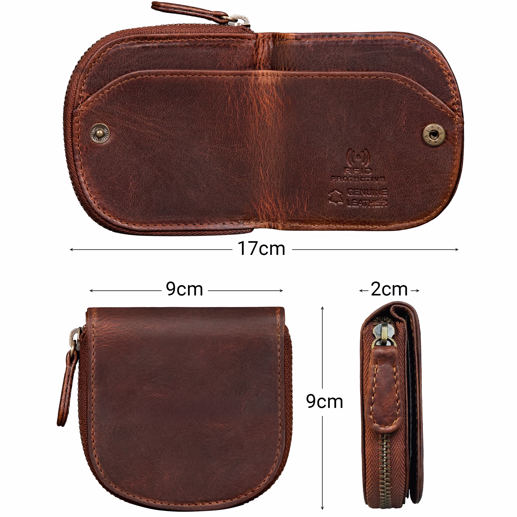- COMPACTO, LIGERO Y PRÁCTICO: El monedero cuero hombre con formato redondeado y diseño delgado cabe fácilmente en cualquier bolsillo. Ideal para quienes buscan funcionalidad y estilo en un formato discreto y elegante.