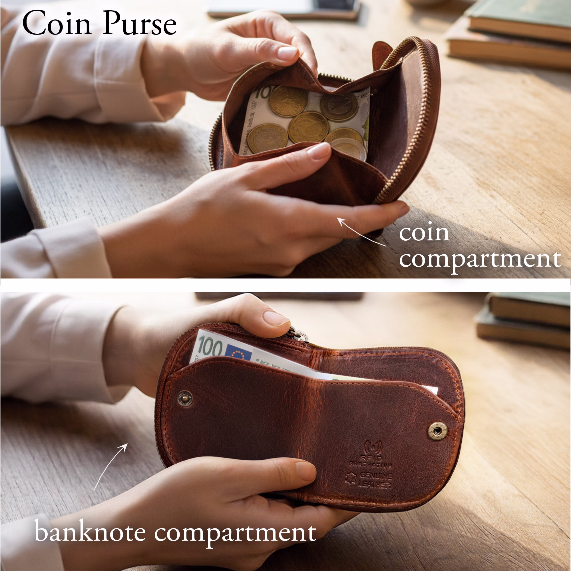 - Compartimento para monedas abatible para una visión perfecta | Cremallera circundante para un acceso rápido y seguro