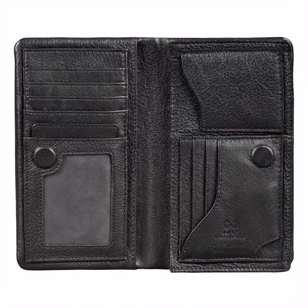 Para quienes necesitan la máxima organización en cualquier momento: La Cartera piel hombre extra grande extralarga ofrece mucho espacio para tarjetas, dinero en efectivo, recibos e incluso tu smartphone. Con 11 ranuras para tarjetas, una ventana de identificación, dos bolsillos interiores y un compartimento grande para billetes o móvil, todo queda perfectamente ordenado y a mano. Se abre completamente, tiene una estructura clara y se cierra de forma segura gracias a un fuerte cierre magnético, ideal como cartera hombre grande para quienes valoran el espacio y el orden.