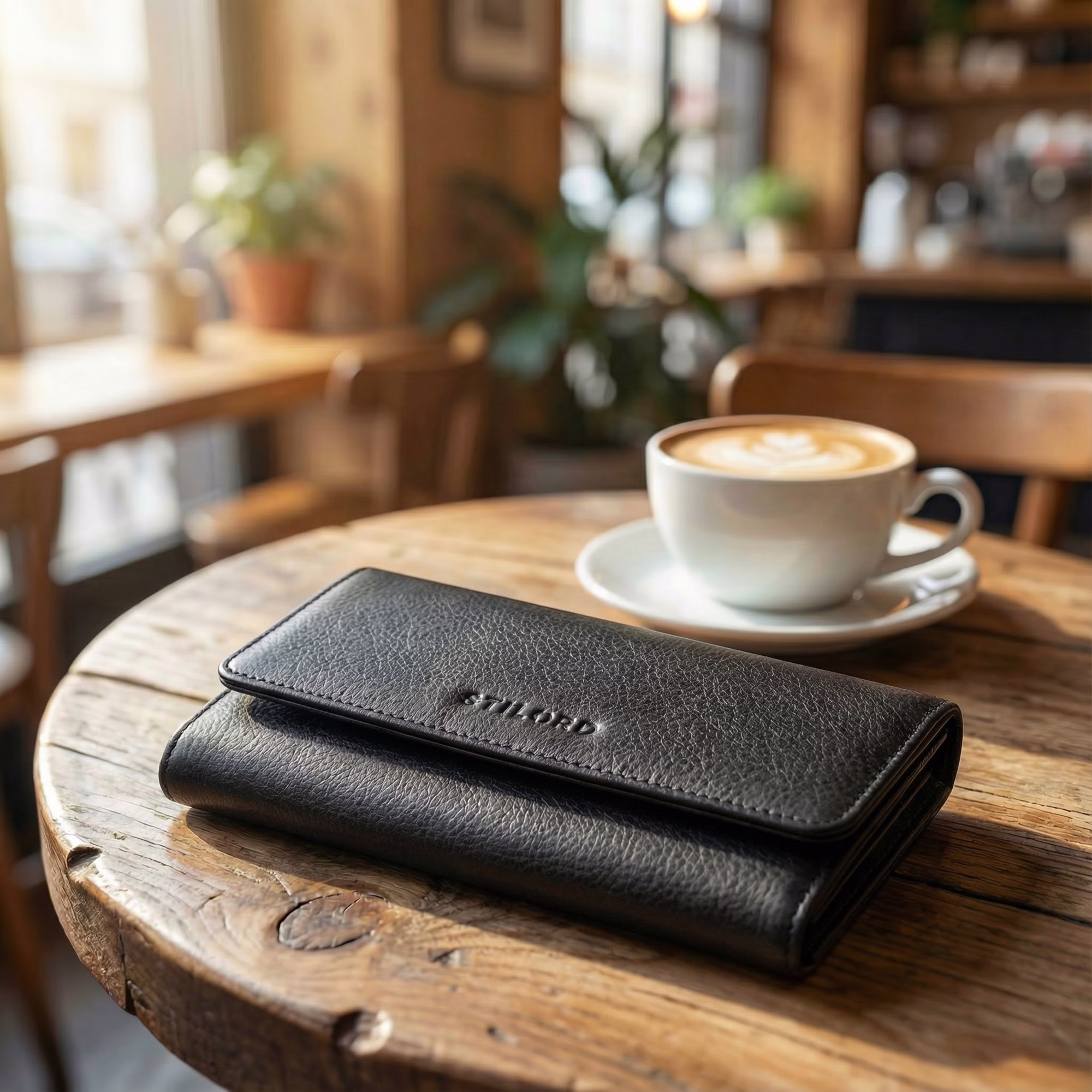 STILORD "Elara" Cartera XL De Mujer En Cuero Auténtico Plegable Con Gran Monedero