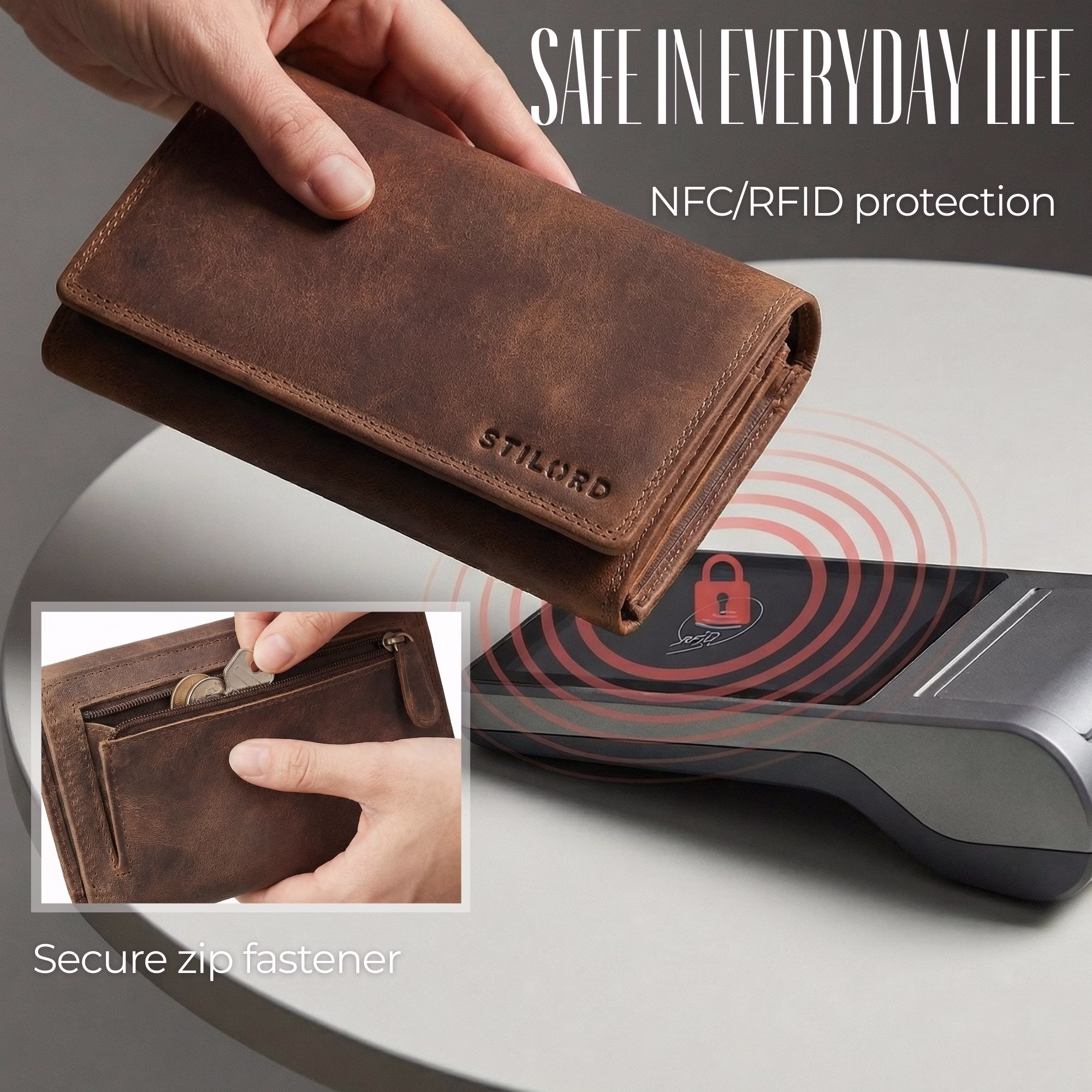 STILORD "Mirella" - Cartera con bloqueo RFID para mujer de piel – Espacio que convence