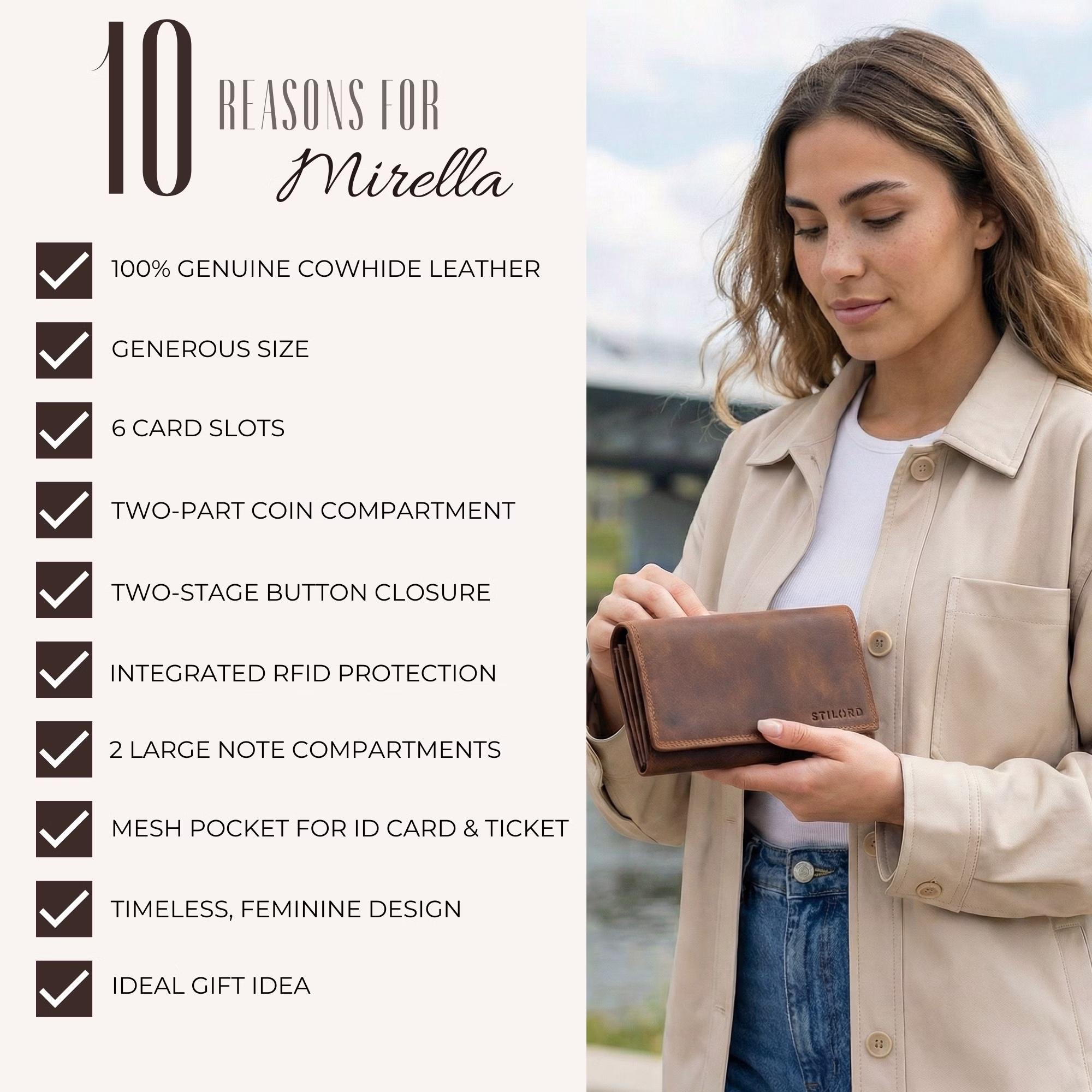 - Idea de regalo: La cartera vintage "Mirella" de auténtico cuero es un regalo mujer ideal, perfecto también como regalo para madre con estilo y organización.