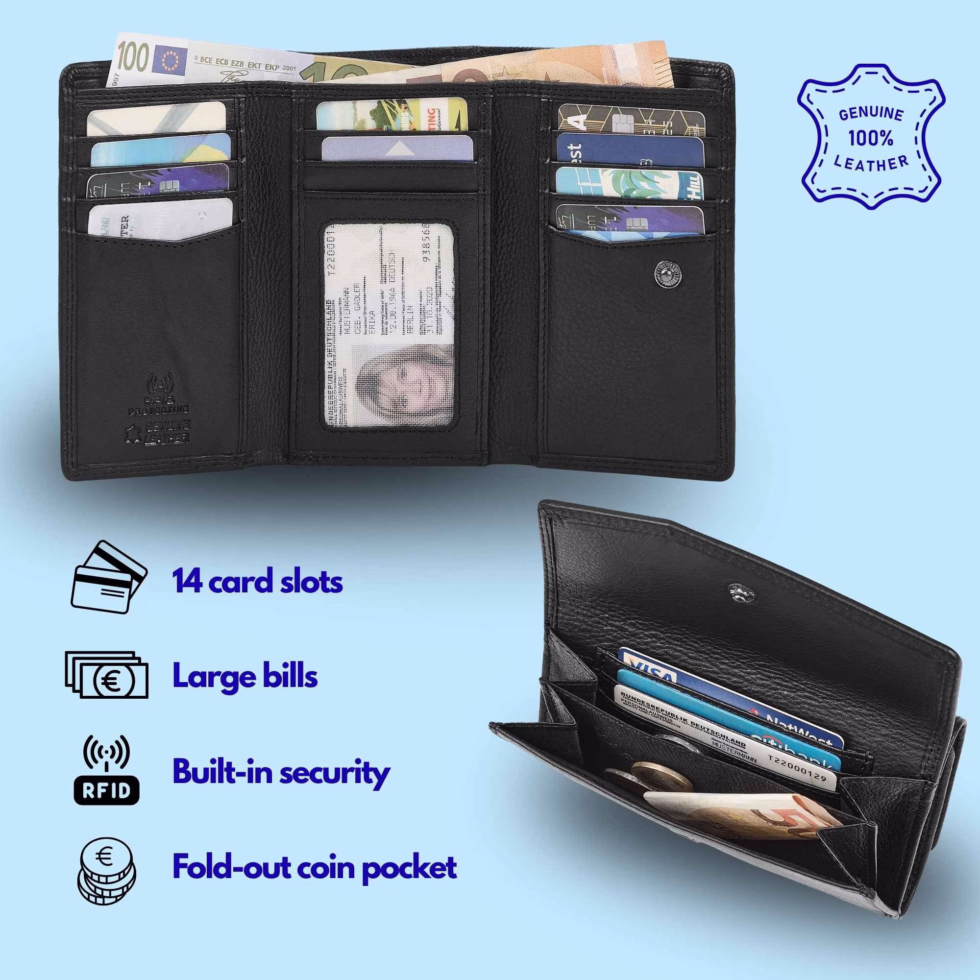 - Alta calidad y seguridad: cartera con bloqueo rfid para mujer de piel para mayor seguridad | Cuero auténtico suave y duradero