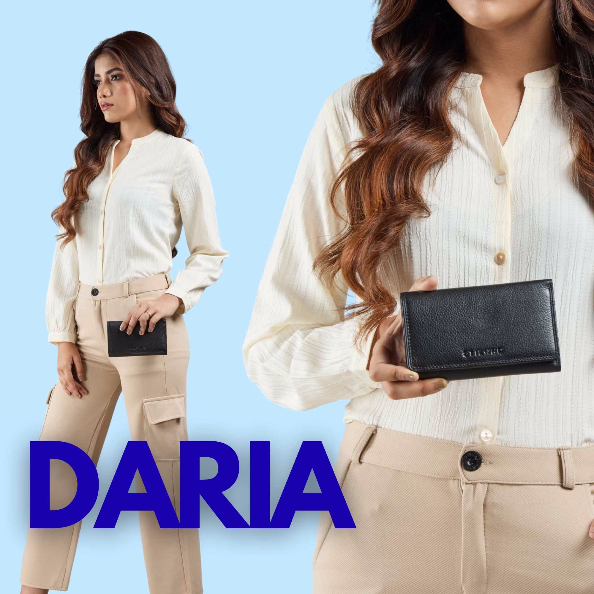 La cartera de cuero "Daria" combina a la perfección un diseño vintage con materiales de alta calidad. El auténtico cuero real ofrece una sensación suave y un estilo atemporal que se va enriqueciendo con el tiempo, creando una cartera de mujer en cuero único con cada uso.