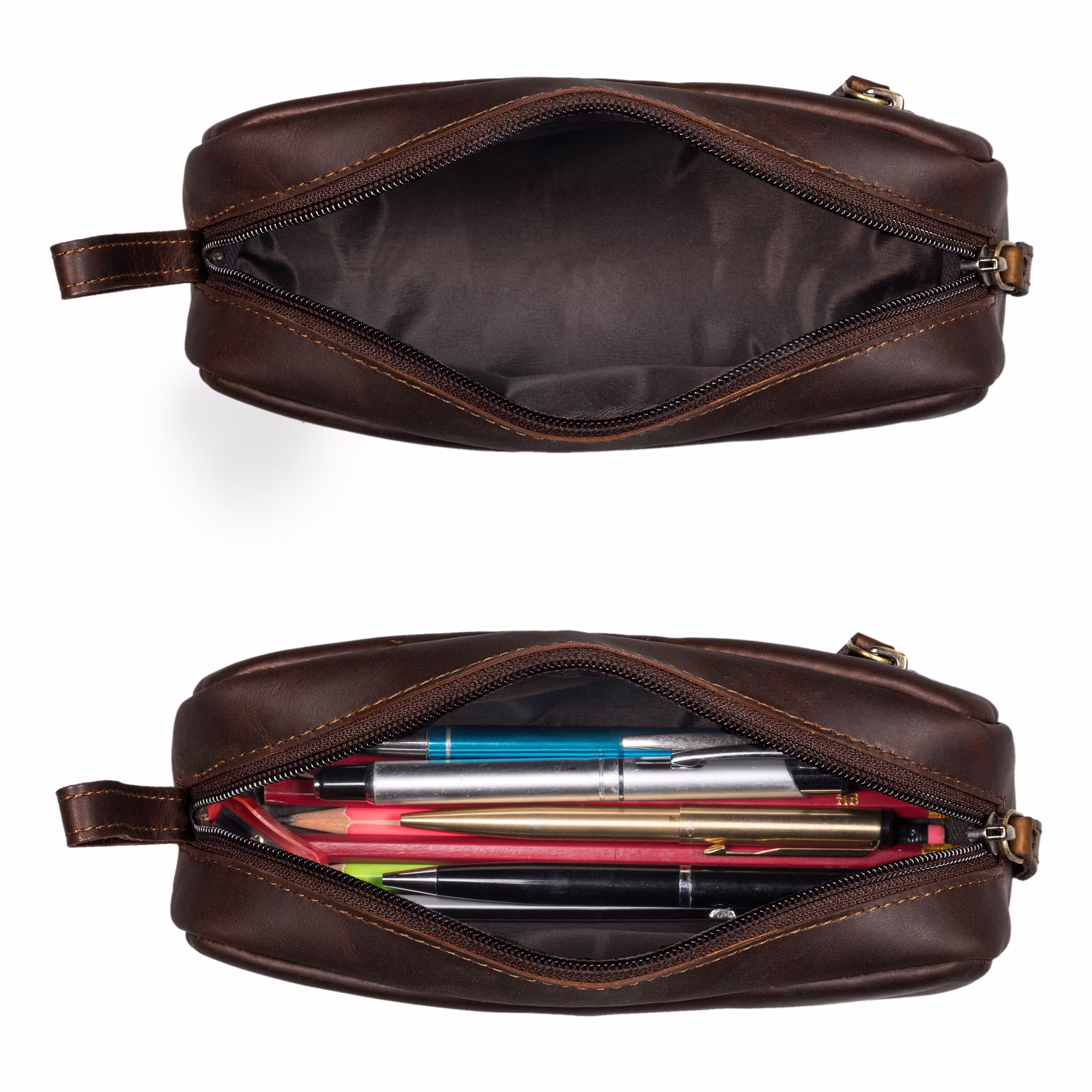- Acabado premium: Costuras limpias, cremallera resistente y forro interior cuidadosamente trabajado hacen del cartuchera de cuero un compañero duradero
