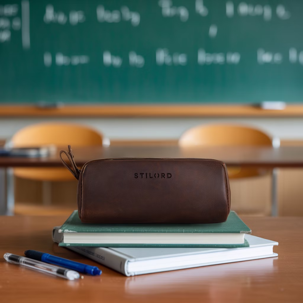 Este estuche vintage de piel es el compañero perfecto para la escuela, la universidad, la oficina y el tiempo libre. Fabricado en cuero auténtico, la funda de cuero convence por su tacto especial: robusto y agradable en la mano. Gracias a su formato generoso, el estuche de piel ofrece mucho espacio de almacenamiento: bolígrafos, regla, escuadra, calculadora, cables o cosméticos se pueden guardar sin esfuerzo. Así todo permanece a mano – práctico, ordenado y con estilo. Las costuras limpias, una cremallera resistente y un forro interior de alta calidad garantizan que el boligrafo vintage no solo tenga buen aspecto, sino que también funcione de forma fiable en el día a día.