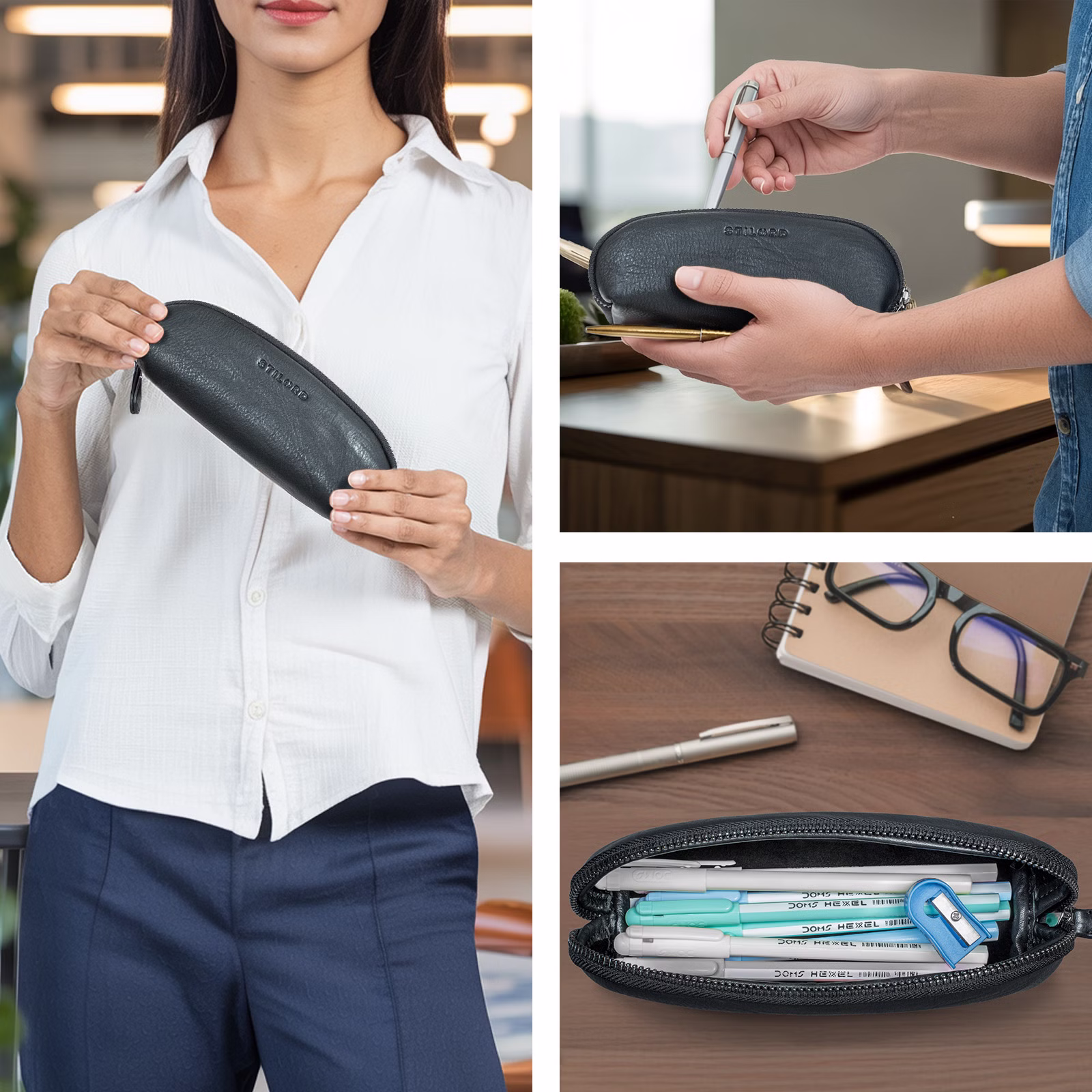 Ya sea un día de trabajo, una clase universitaria o un proyecto creativo, el estuche pequeño "Leano" combina elegancia atemporal y comodidad práctica. El compartimento principal guarda bolígrafos y marcadores de forma ordenada. Como estuche de cuero para lápices, es perfecto para escuela, universidad u oficina y destaca como funda boligrafo para hombres y mujeres por su diseño sencillo y duradero.