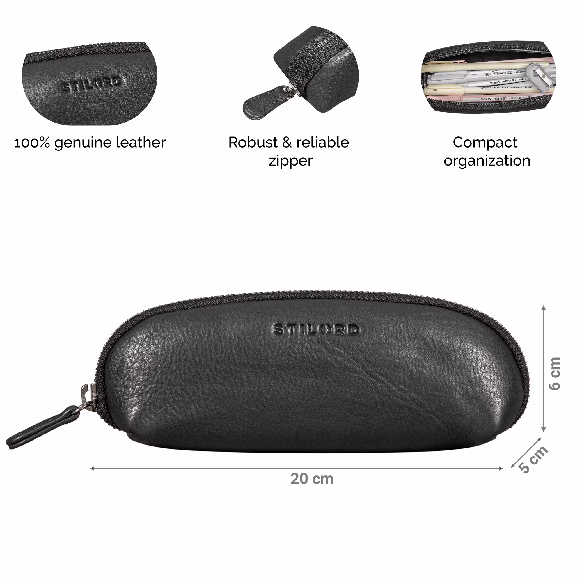 - DETALLES: Dimensiones: 20 x 5 x 6 cm | Peso: 100 g | Material: Cuero auténtico de vaca | Modelo: "Leano" | Marca: STILORD | Compatibilidad: bolígrafos, marcadores, útiles de escritura | Destacados: diseño sencillo y atemporal, cremallera de alta calidad, cuero resistente