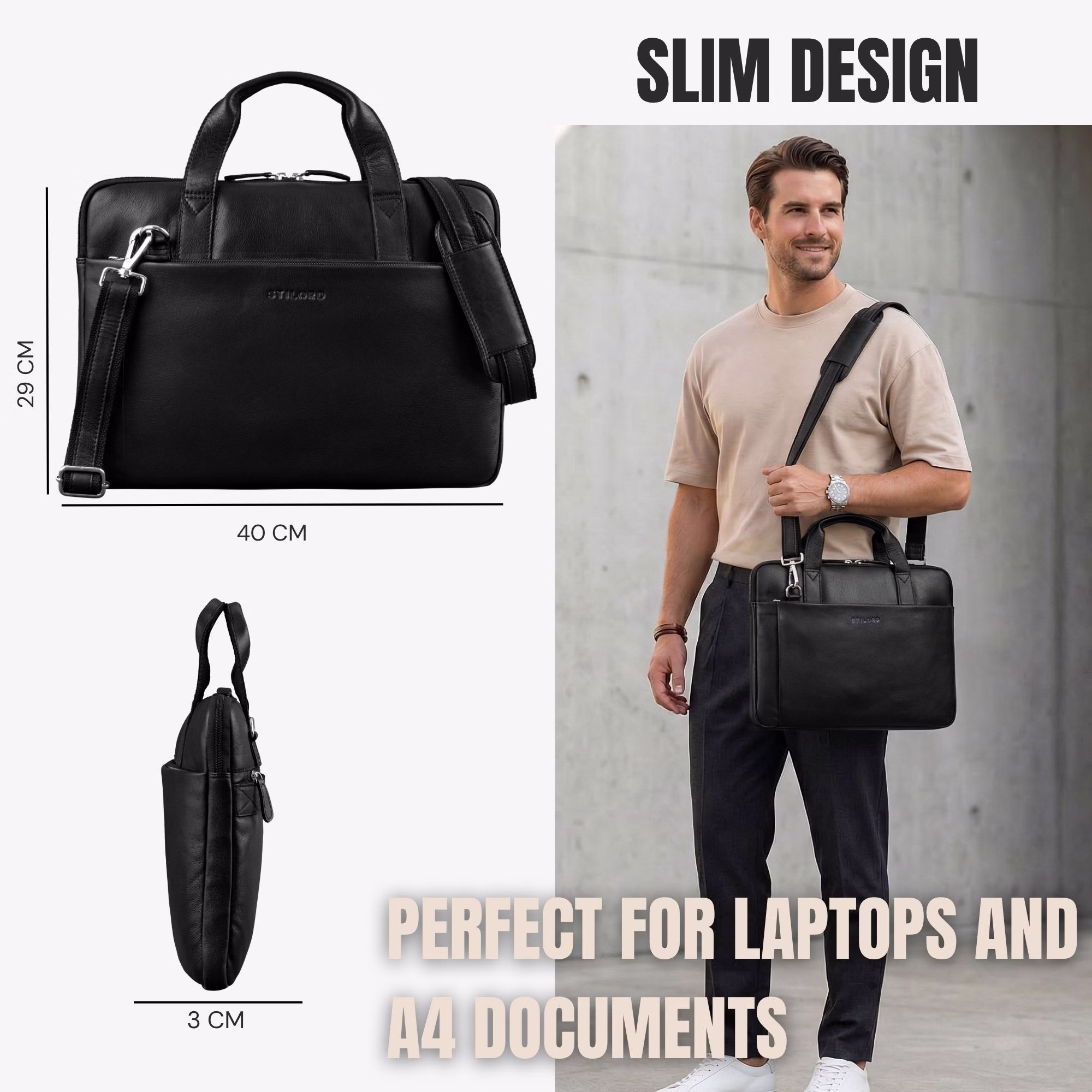 - DETALLES: Dimensiones (LxAnxAl) aprox. 40 x 3 x 29 cm | Peso aprox. 850 g | Material: cuero genuino | Marca: STILORD | Modelo: "Cornelius" | Apto para 15, 15.6 y 16 pulgadas