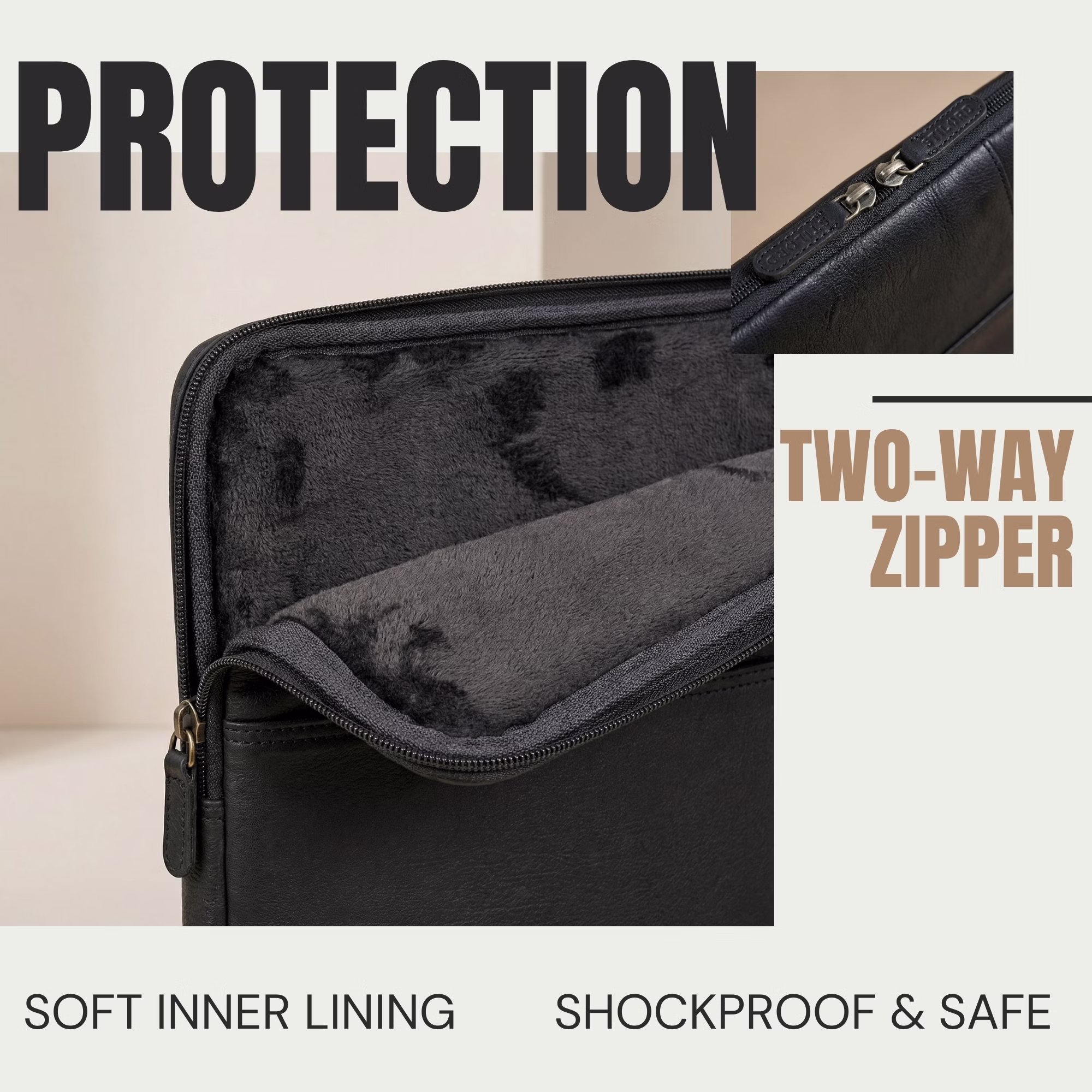 • Protección acolchada integral: Forro interior suave con refuerzo en los bordes – funda para portátil de cuero fiable para el trabajo, la universidad o los desplazamientos