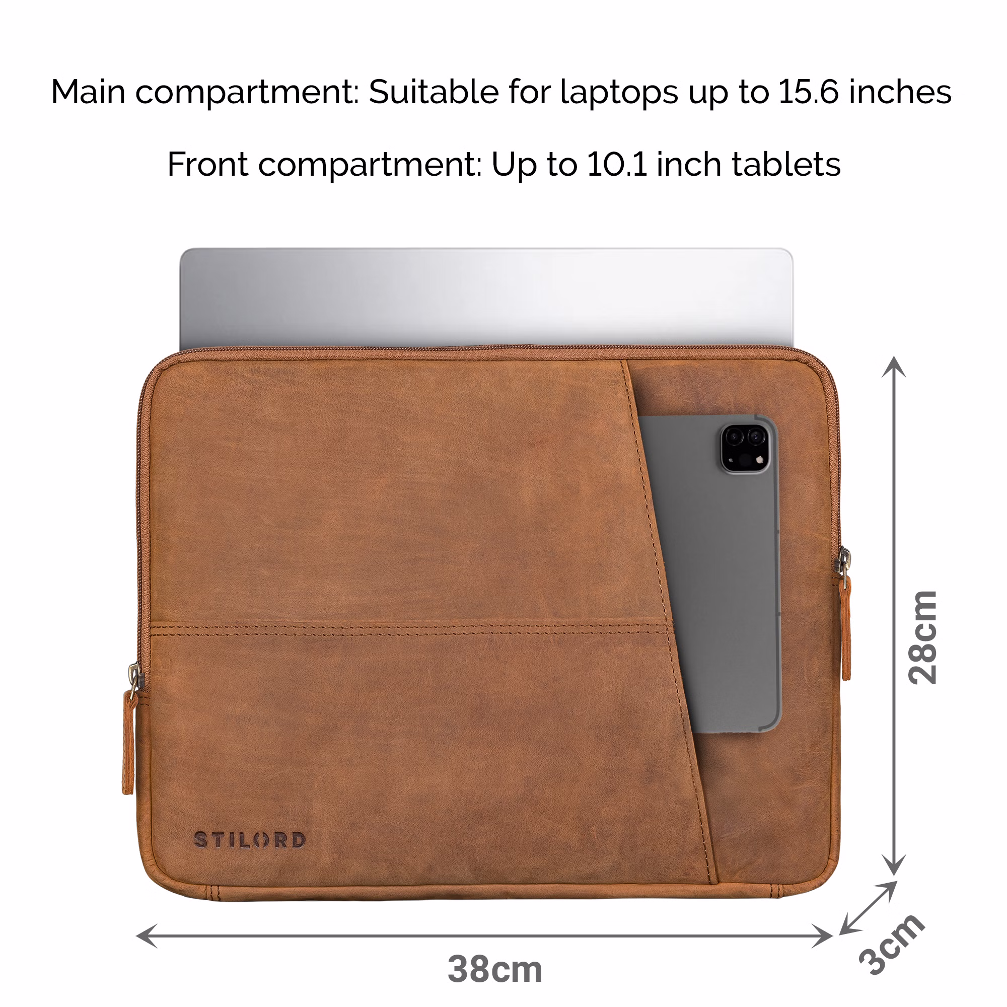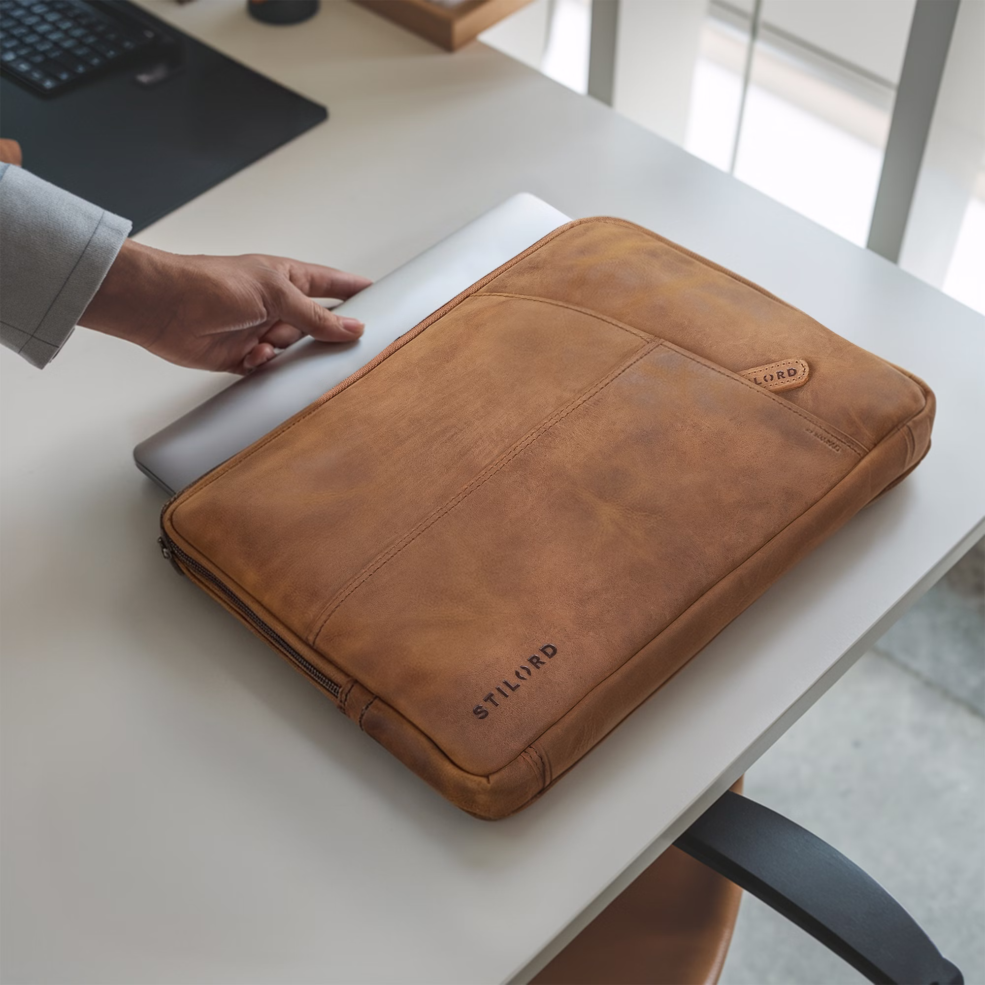 STILORD "Cannes" Funda cuero acolchada para portátil de 15,6"