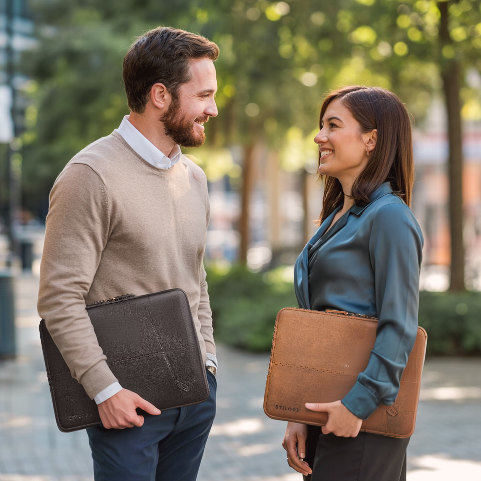 Diseñada para quienes avanzan con determinación: esta funda de piel combina elegancia, funcionalidad y seguridad para el día a día en el trabajo, de viaje o en casa. Ya sea en una reunión de negocios o trabajando desde cualquier lugar, tu portátil viajará siempre bien protegido.