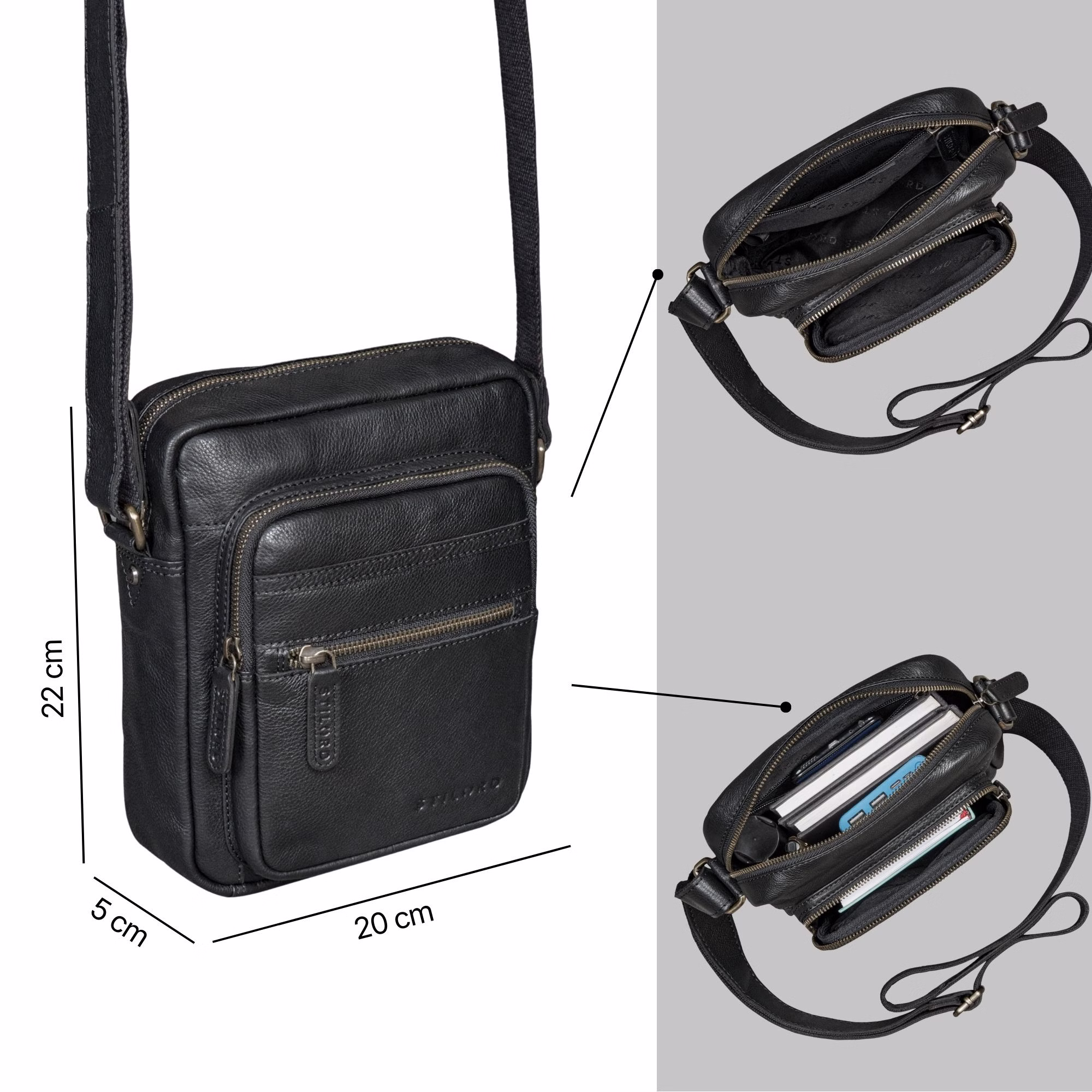 - DETALLES: Dimensiones: aprox. 20 x 5 x 22 cm | Correa: 80–150 cm ajustable | Peso: 540 g | Modelo: “Rayo” | Material: Cuero auténtico | Marca: STILORD