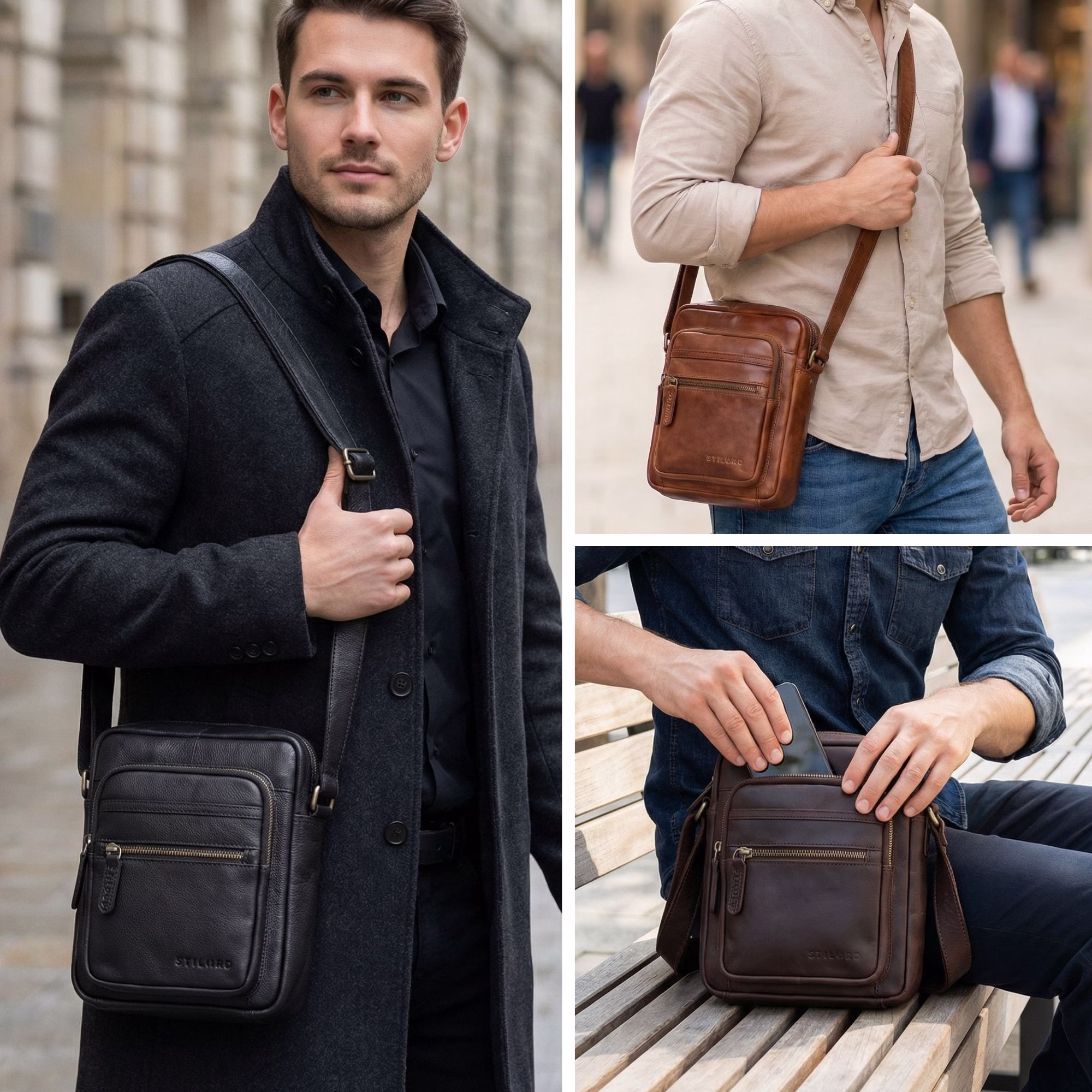 - Para hombres que valoran el orden: Todo tiene su lugar – ideal como messenger bag hombre o como bolso de mano hombre piel para llevar al hombro