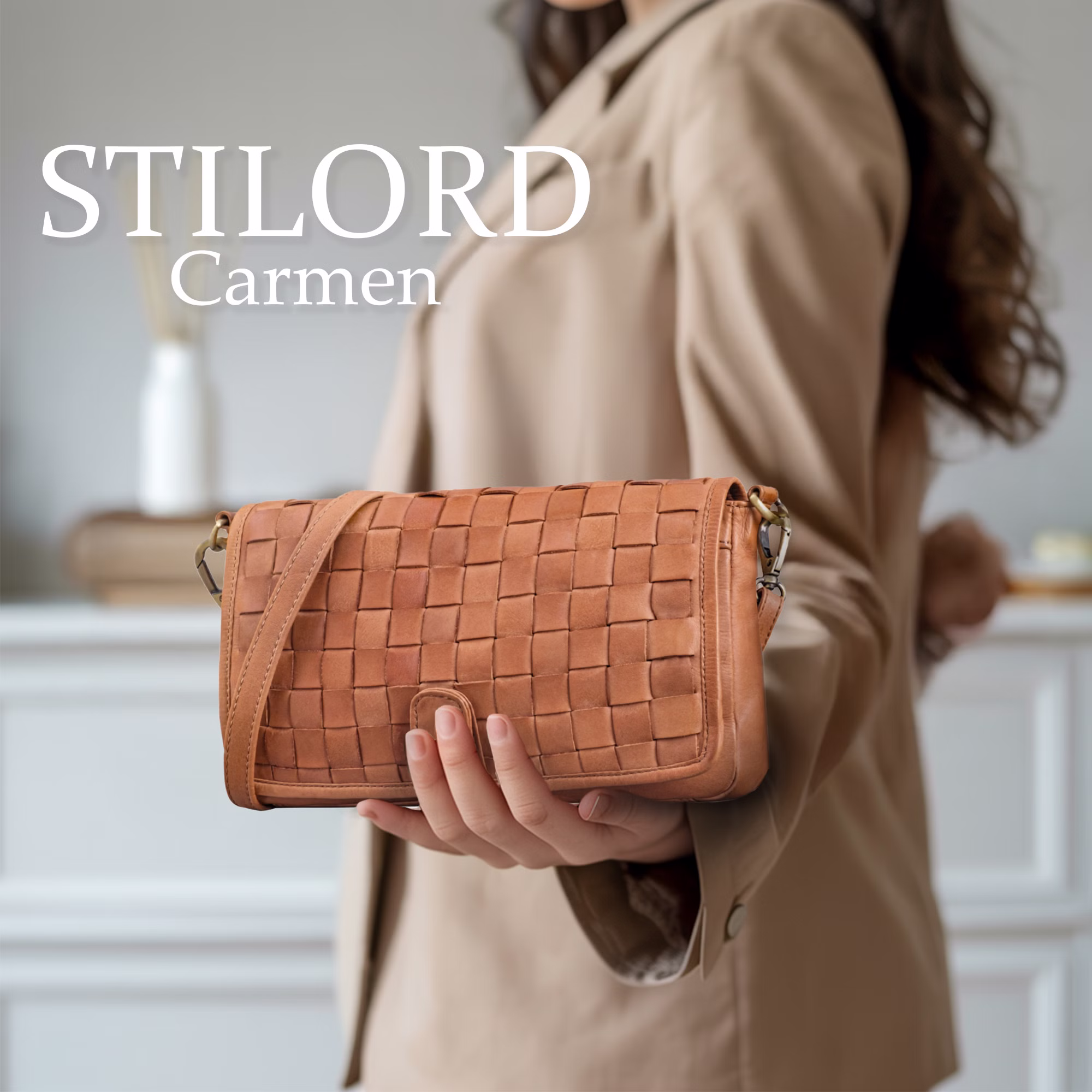 - Dimensiones (LxAxA): aprox. 30 x 6 x 18 cm | Peso: 430 g | Modelo: "Carmen" | Material: cuero de vaca natural | Marca: STILORD