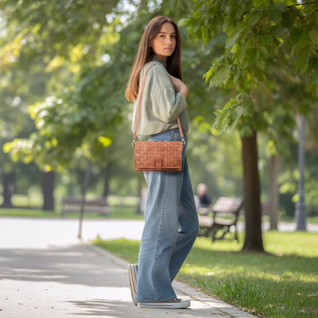Todo a la vista – ¡su bolso bandolera trenzado de cuero con aspecto retro!