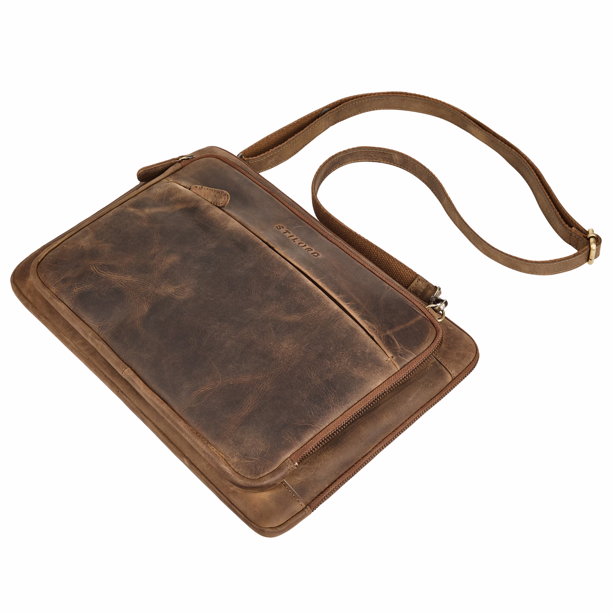 - Dimensiones (LxAxA): 37 x 2 x 27 cm | Peso: 710 gramos | Material: piel de vacuno | Compatibilidad: 1 compartimento acolchado para portátil de 13 | 13,3 | 14 y 15 pulgadas y Macbook (máx. 35 x 25 cm), 1 compartimento acolchado para tableta de hasta 12« o iPad de hasta 13» (aprox. 30 x 21 cm, documentos DIN A4 estrechos)