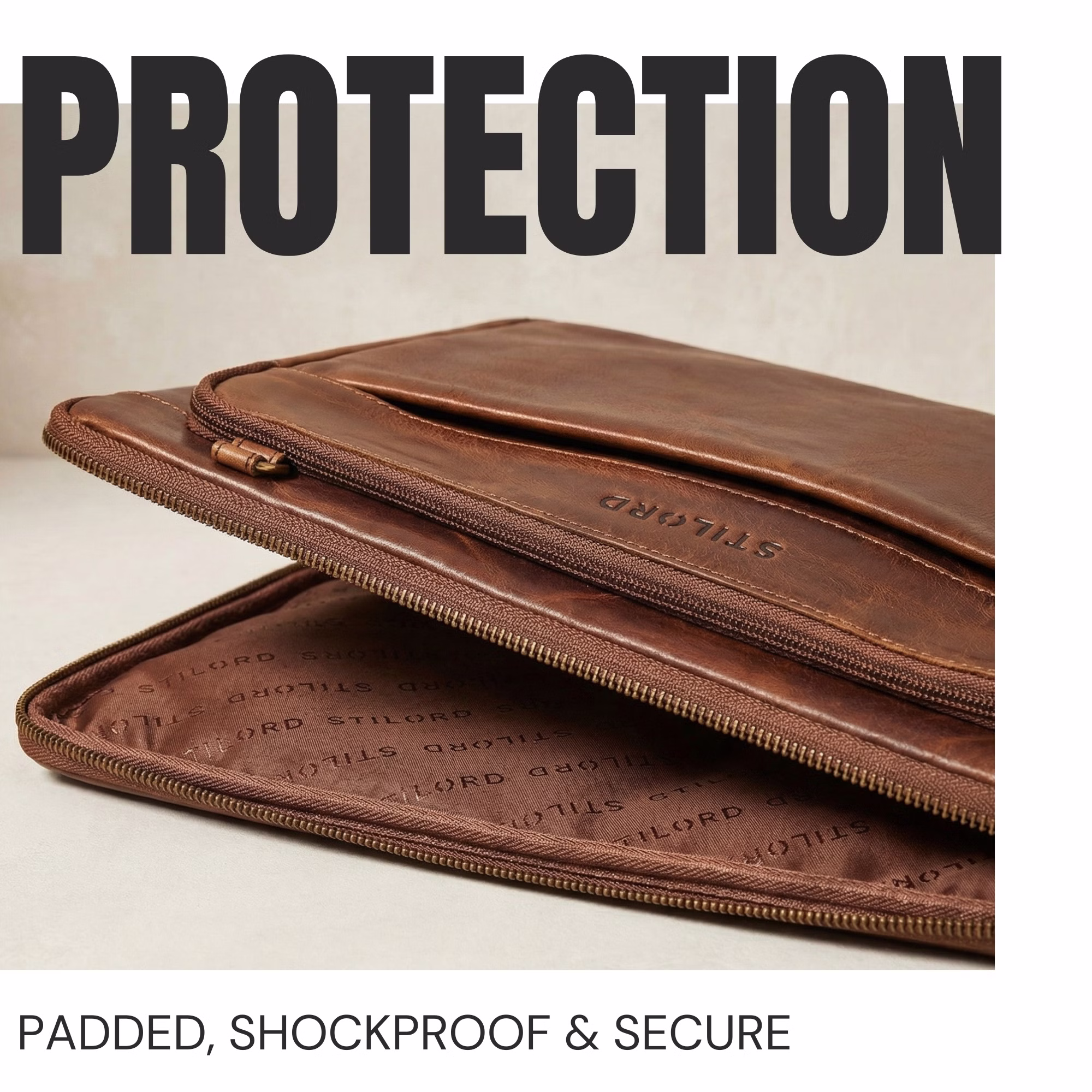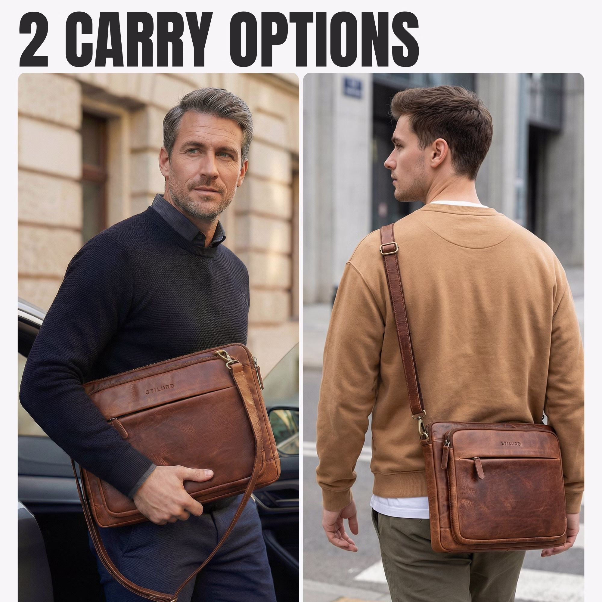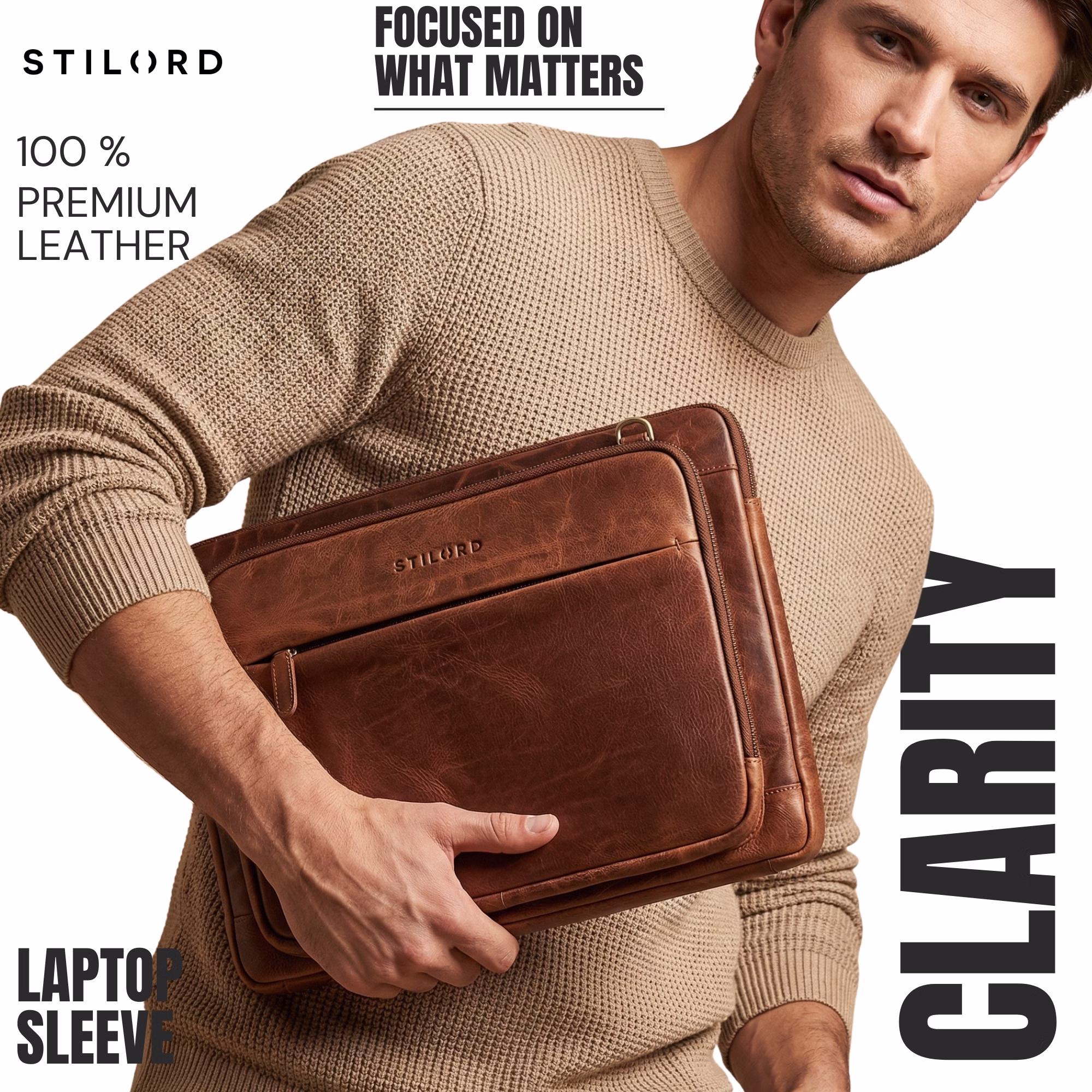 STILORD "Clarity" – Funda de cuero fina para portátil 15–16 pulgadas con correa para hombre