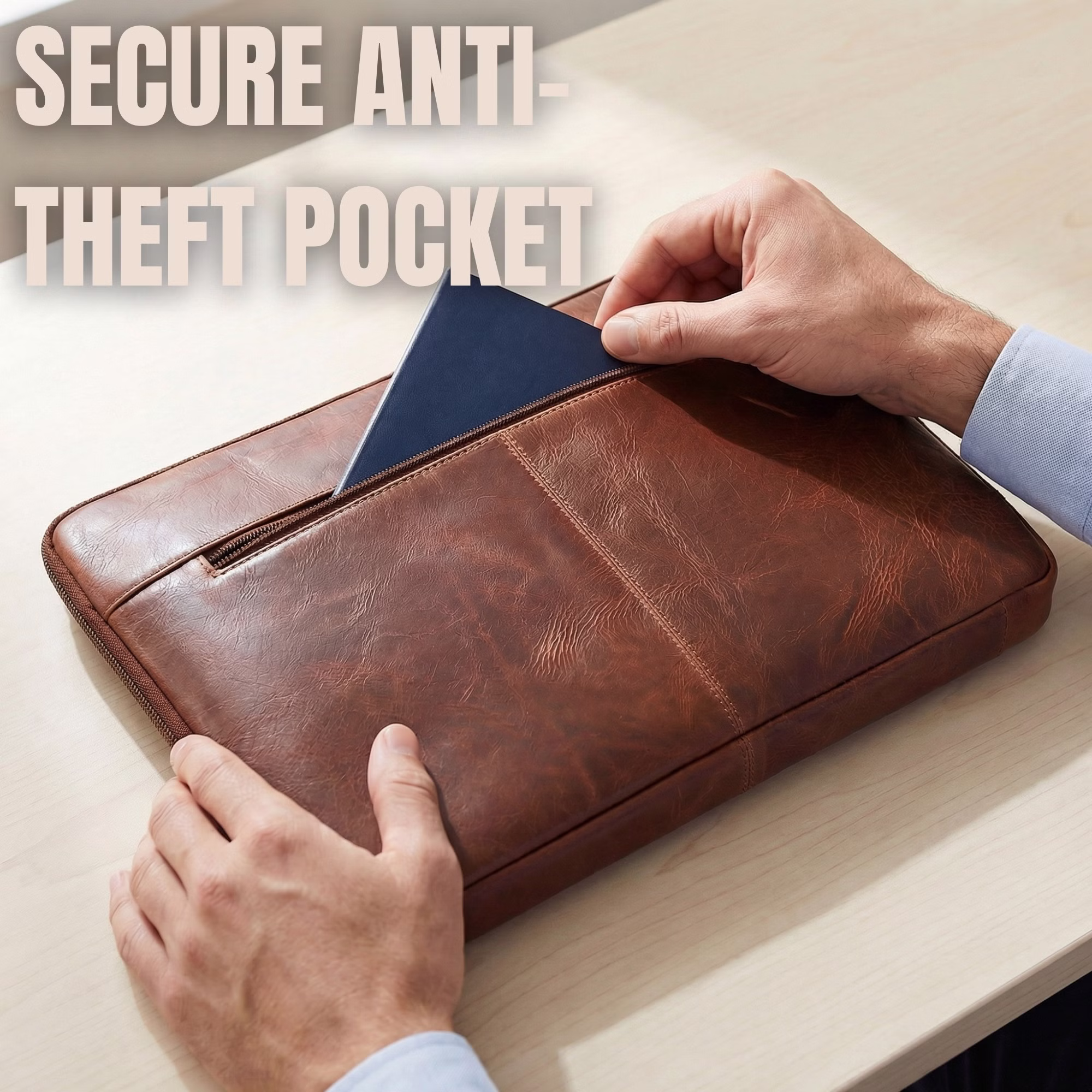 Gracias a la correa ajustable y extraíble, puedes llevarla como sleeve minimalista bajo el brazo o como bandolera tipo crossbody, adaptándose a tu ritmo diario: oficina, universidad, reuniones o trabajo en movilidad. El cuero auténtico, resistente al agua, combina durabilidad y estilo atemporal en una bolsa para portátil pensada para el hombre actual.
