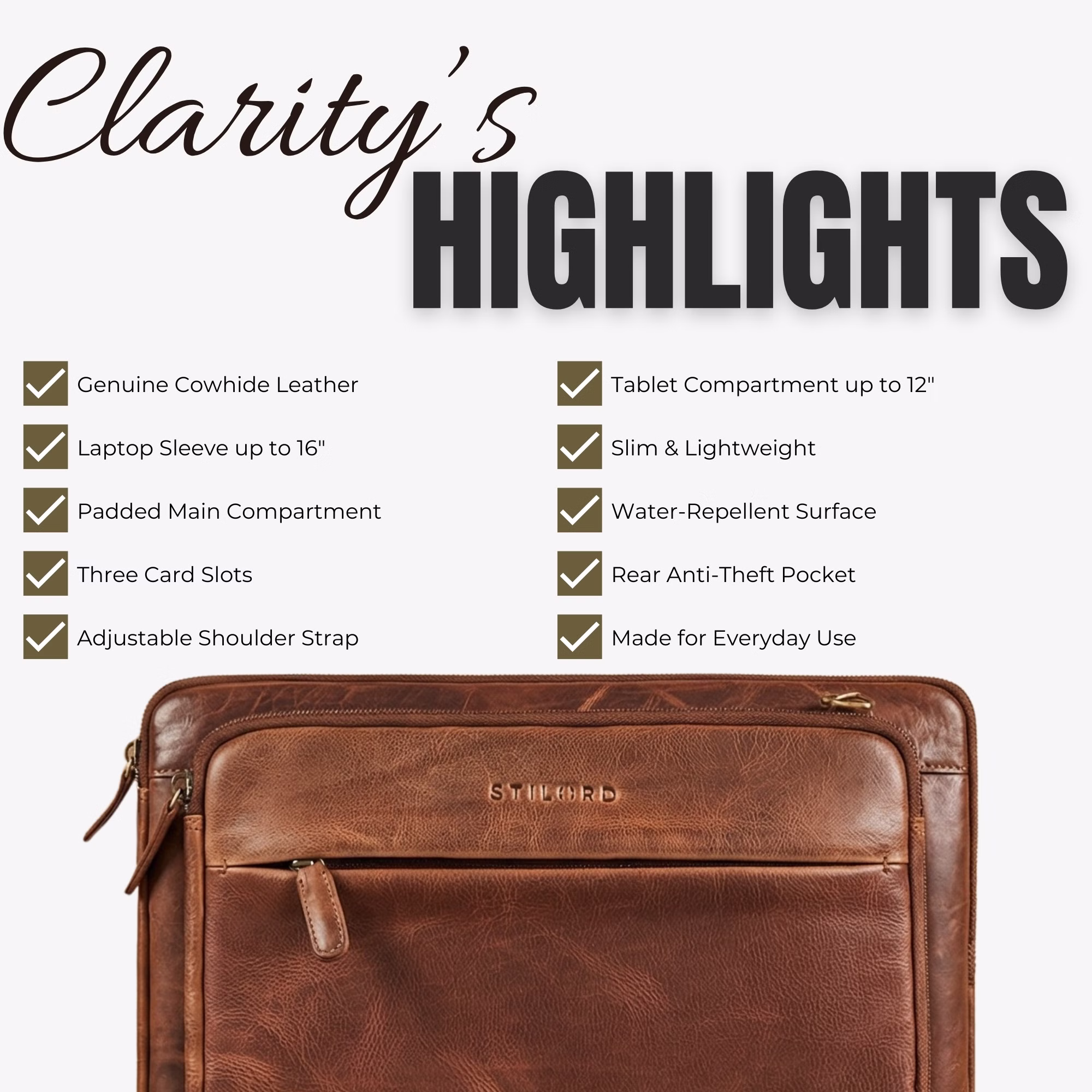 "Clarity" Funda para Portátil 15-16 Pulgadas Cuero para Hombre
