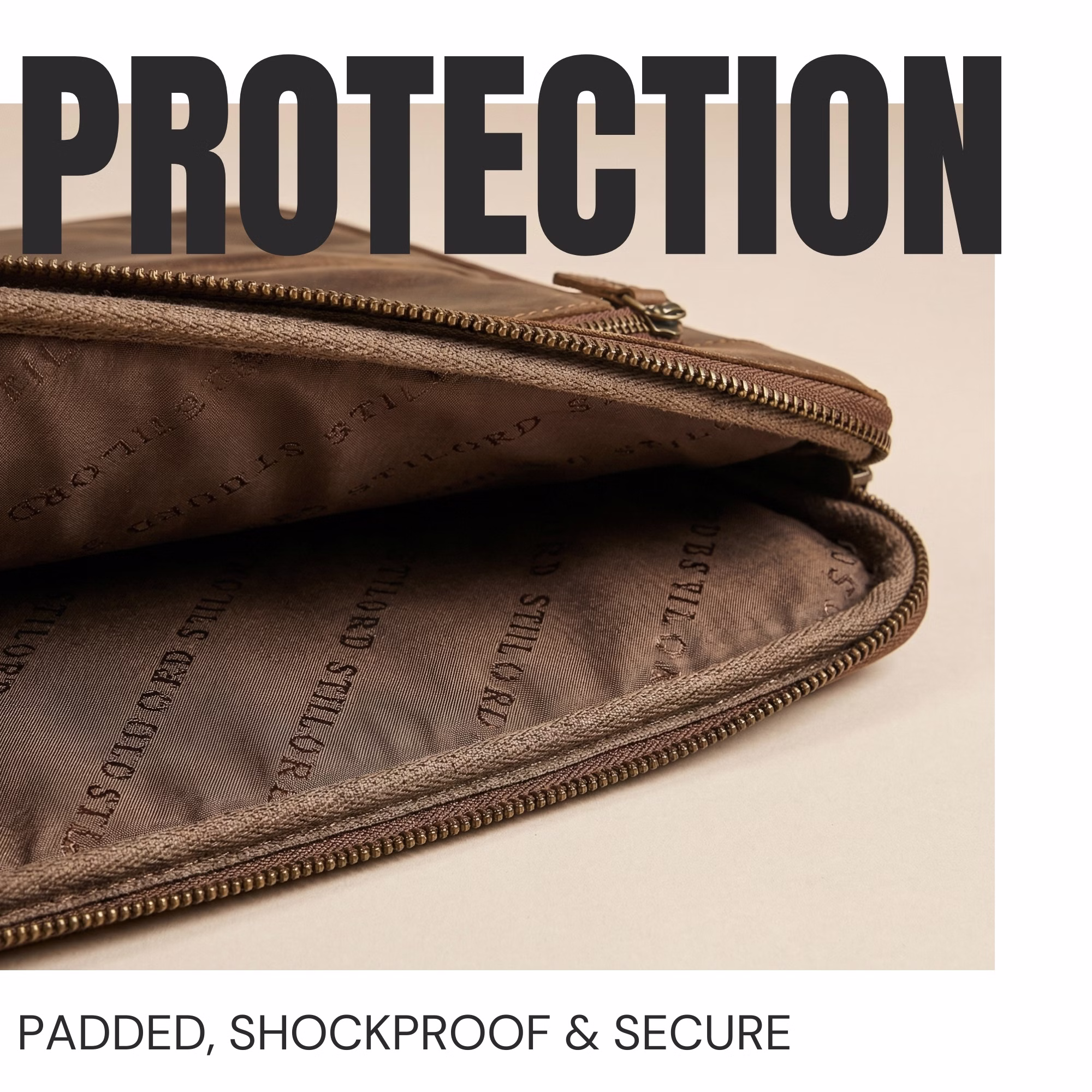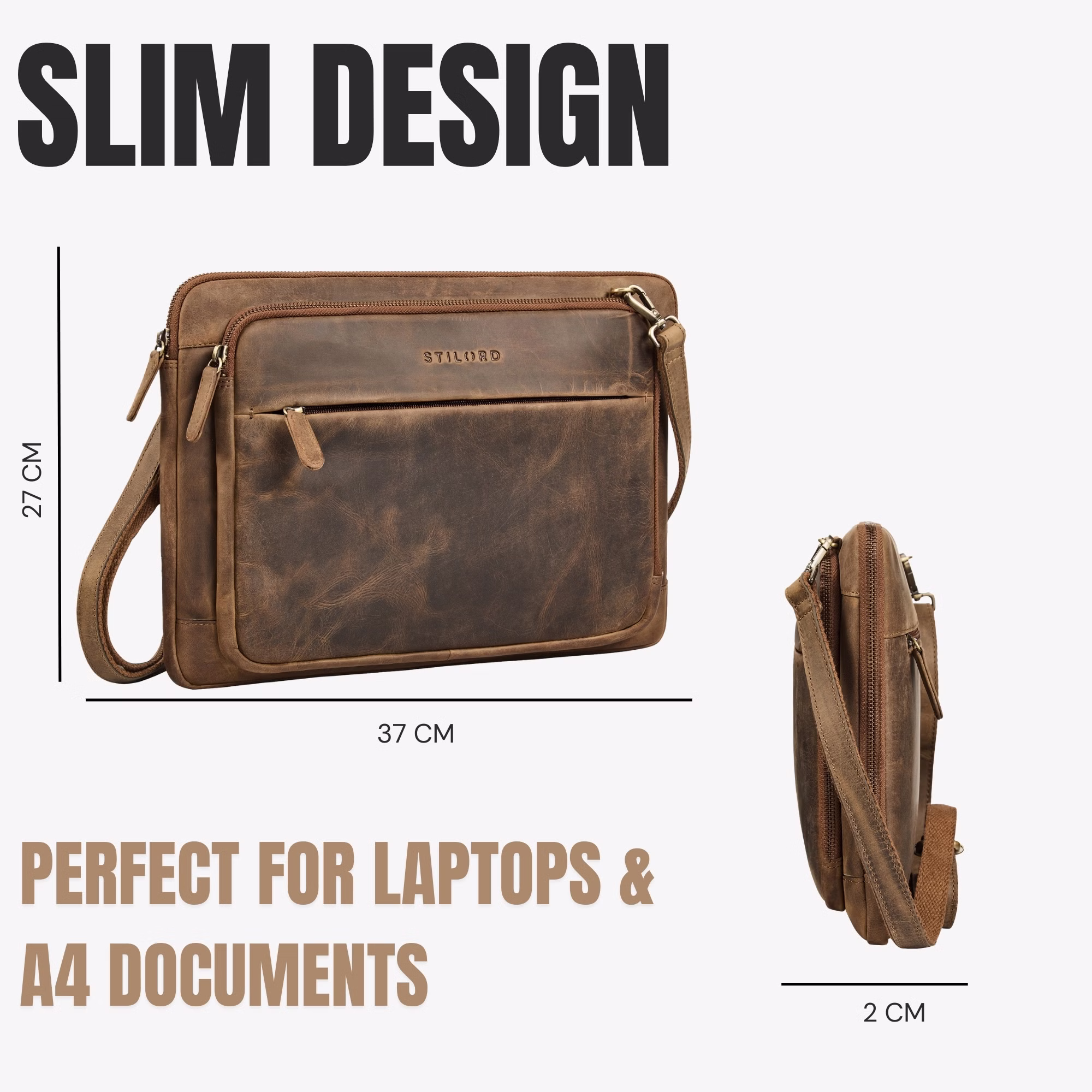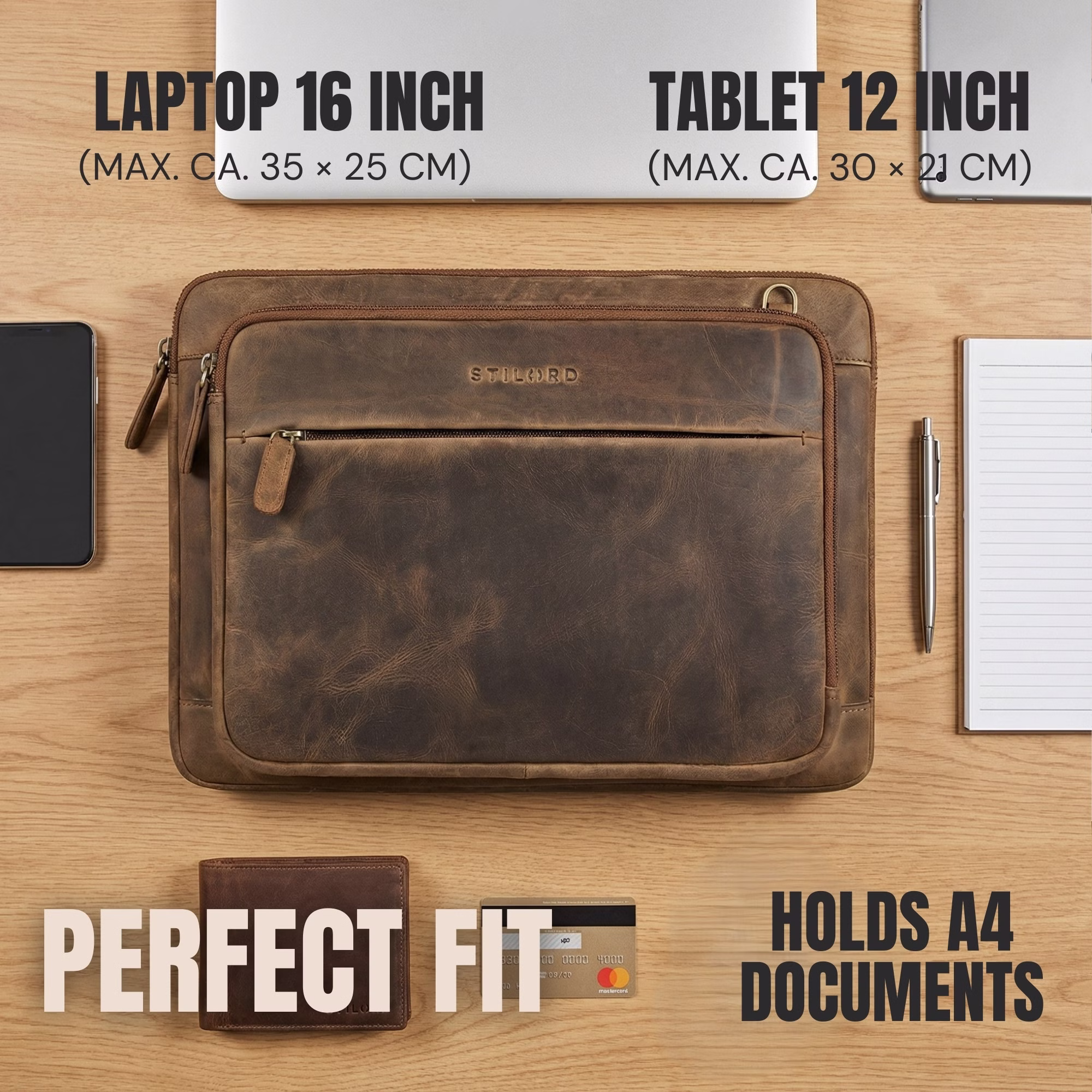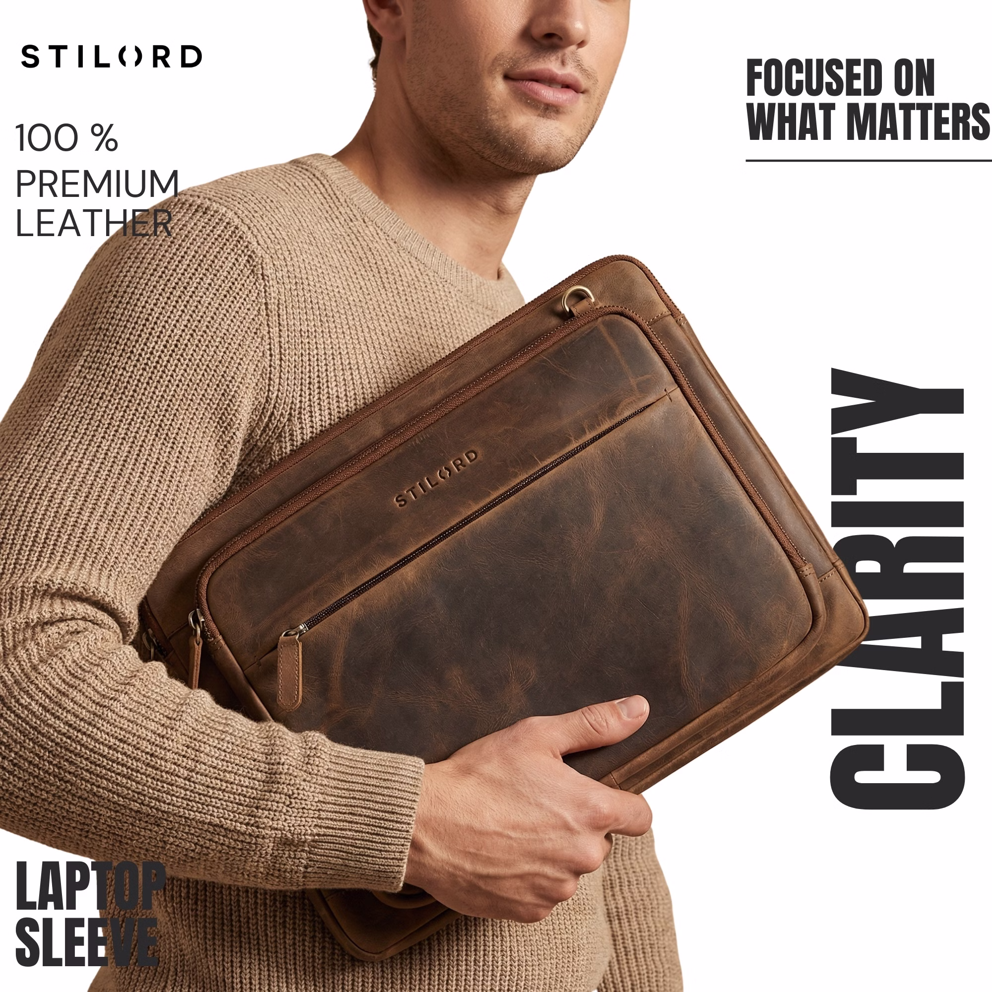 STILORD "Clarity" – Funda de cuero fina para portátil 15–16 pulgadas con correa para hombre