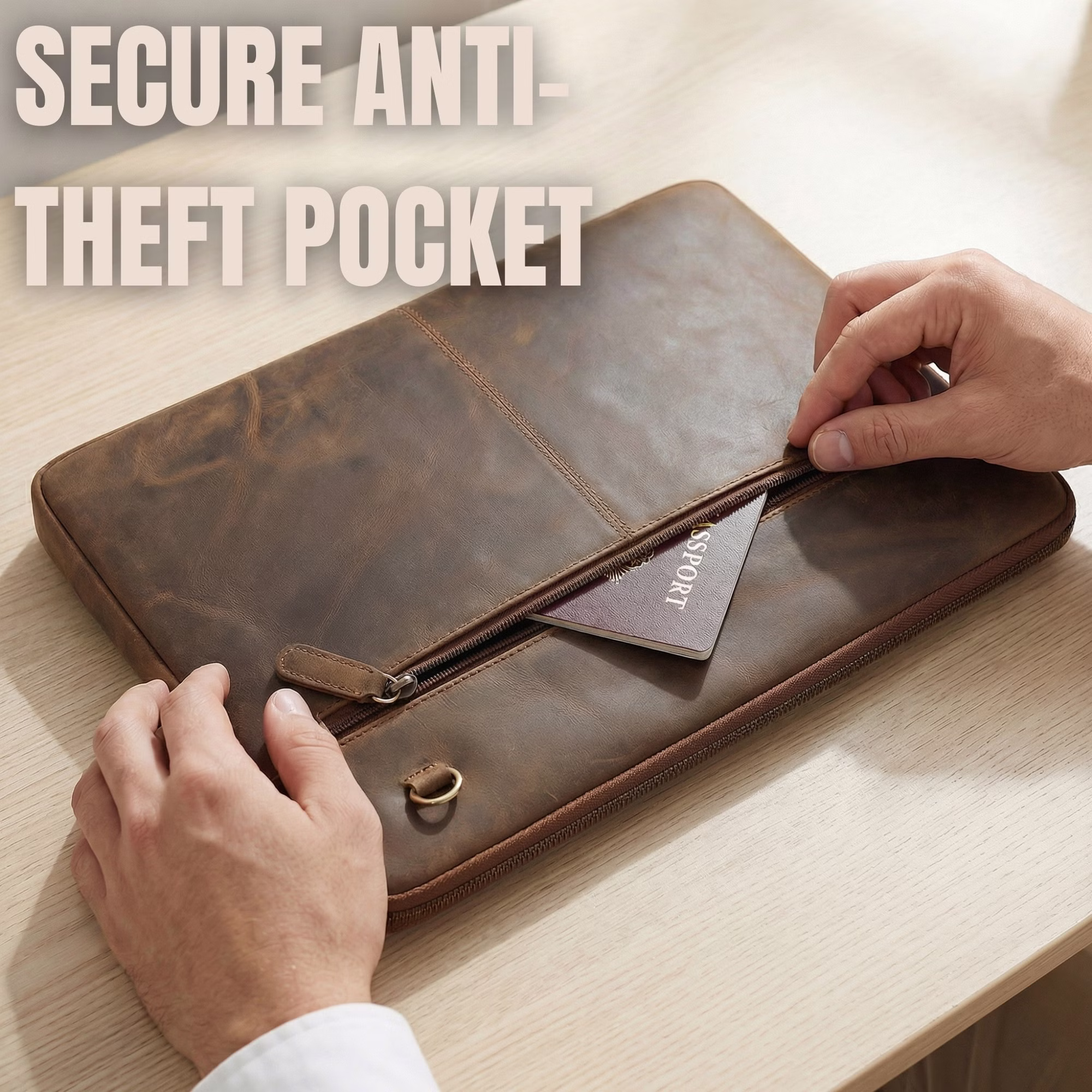 - FUNDA DE CUERO 15–16 PULGADAS: Funda para portátil de cuero vacuno auténtico, diseño fino y profesional. Ideal para laptop, notebook o MacBook en oficina y universidad.
