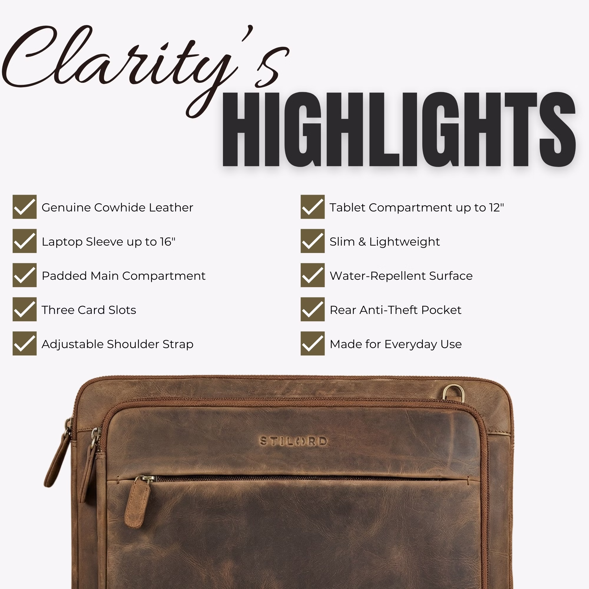 "Clarity" Funda para Portátil 15-16 Pulgadas Cuero para Hombre