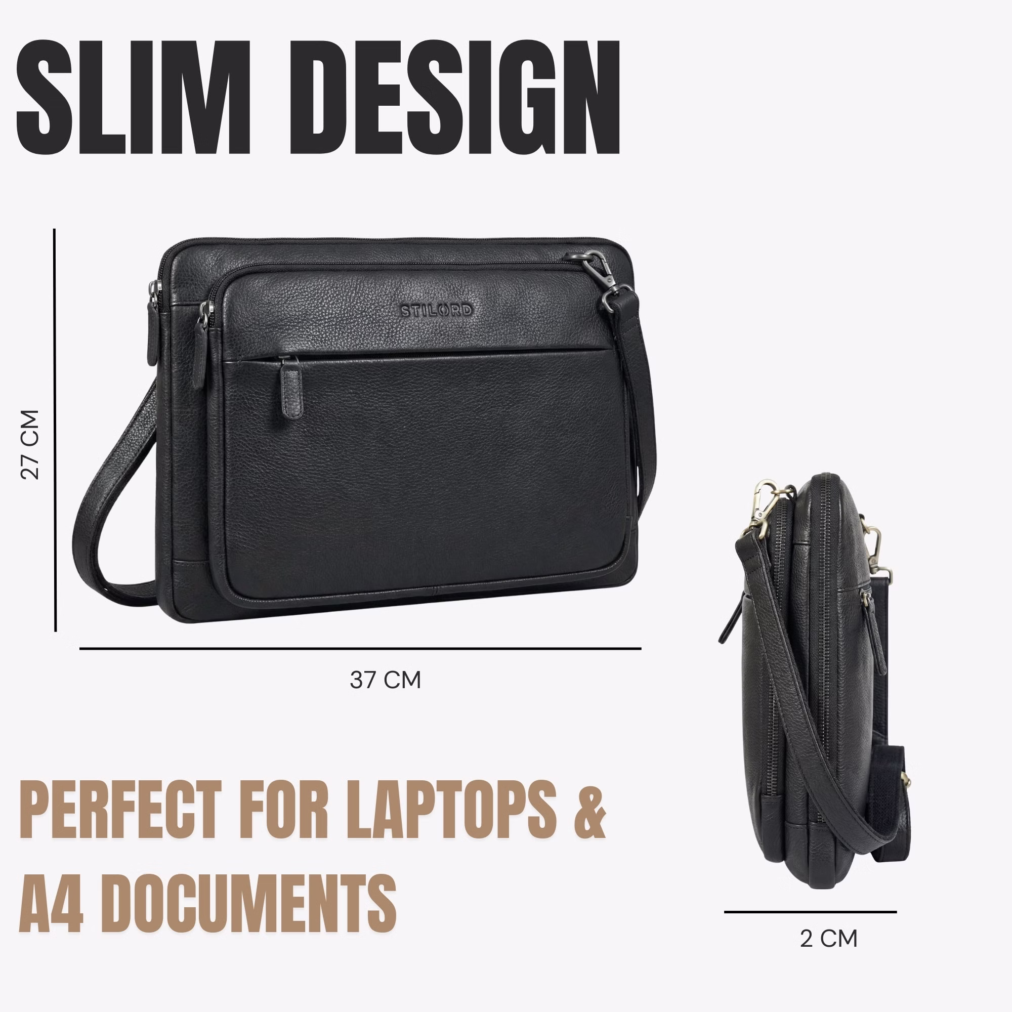 STILORD "Clarity" – Funda de cuero fina para portátil 15–16 pulgadas con correa para hombre