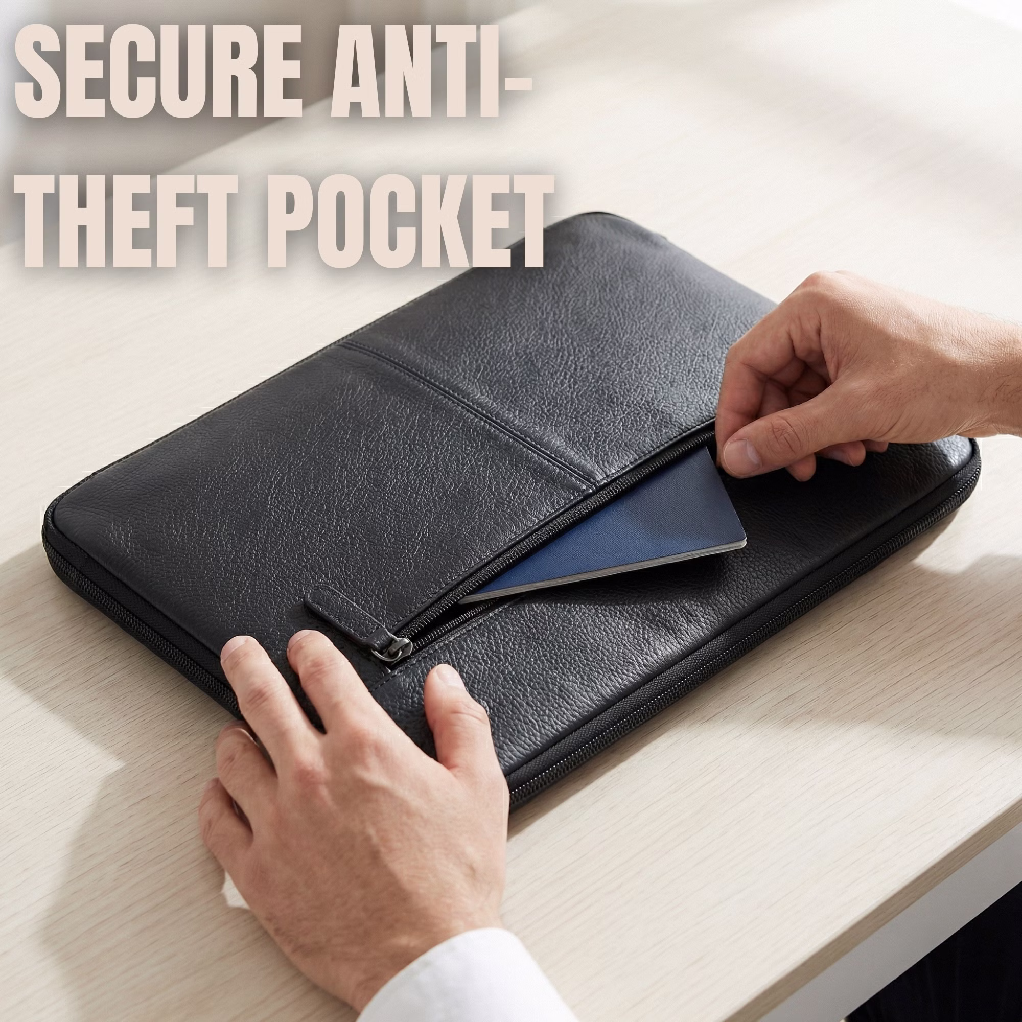 Gracias a la correa ajustable y extraíble, puedes llevarla como sleeve minimalista bajo el brazo o como bandolera tipo crossbody, adaptándose a tu ritmo diario: oficina, universidad, reuniones o trabajo en movilidad. El cuero auténtico, resistente al agua, combina durabilidad y estilo atemporal en una bolsa para portátil pensada para el hombre actual.