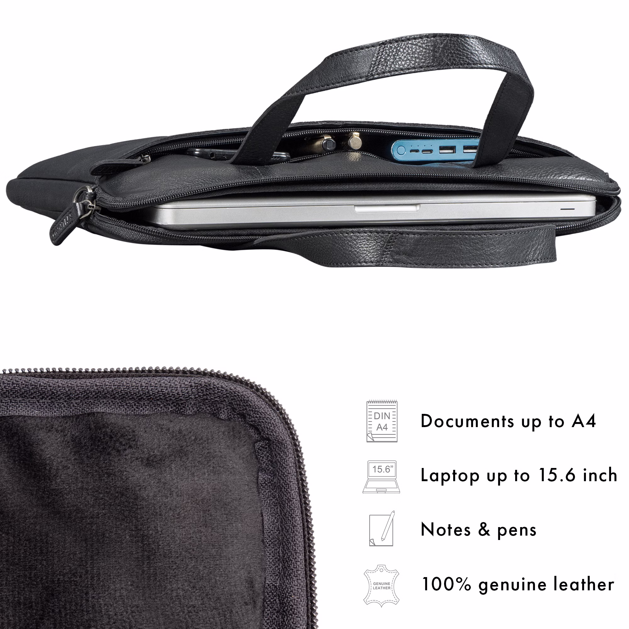 "Leonel" Fino Bolso Ordenador Portátil Piel 15.6 Pulgadas con Correa y Asa para Hombre