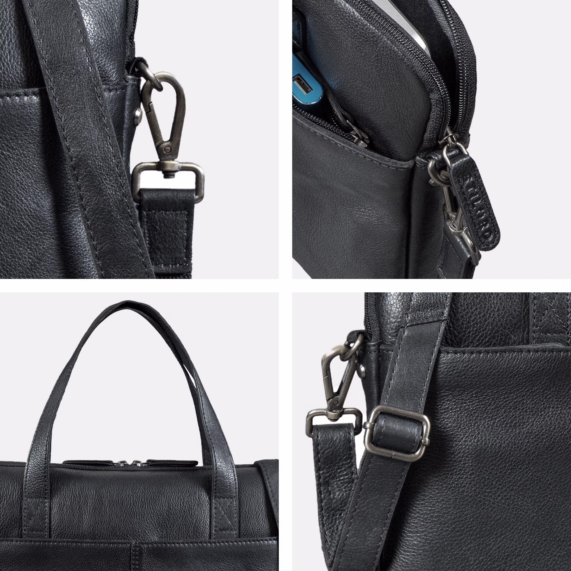 - Cuero auténtico con carácter: fabricada con cuero de alta calidad, suave y resistente, que destaca por su textura natural y durabilidad – cada maletin de cuero para portátil es una pieza única.