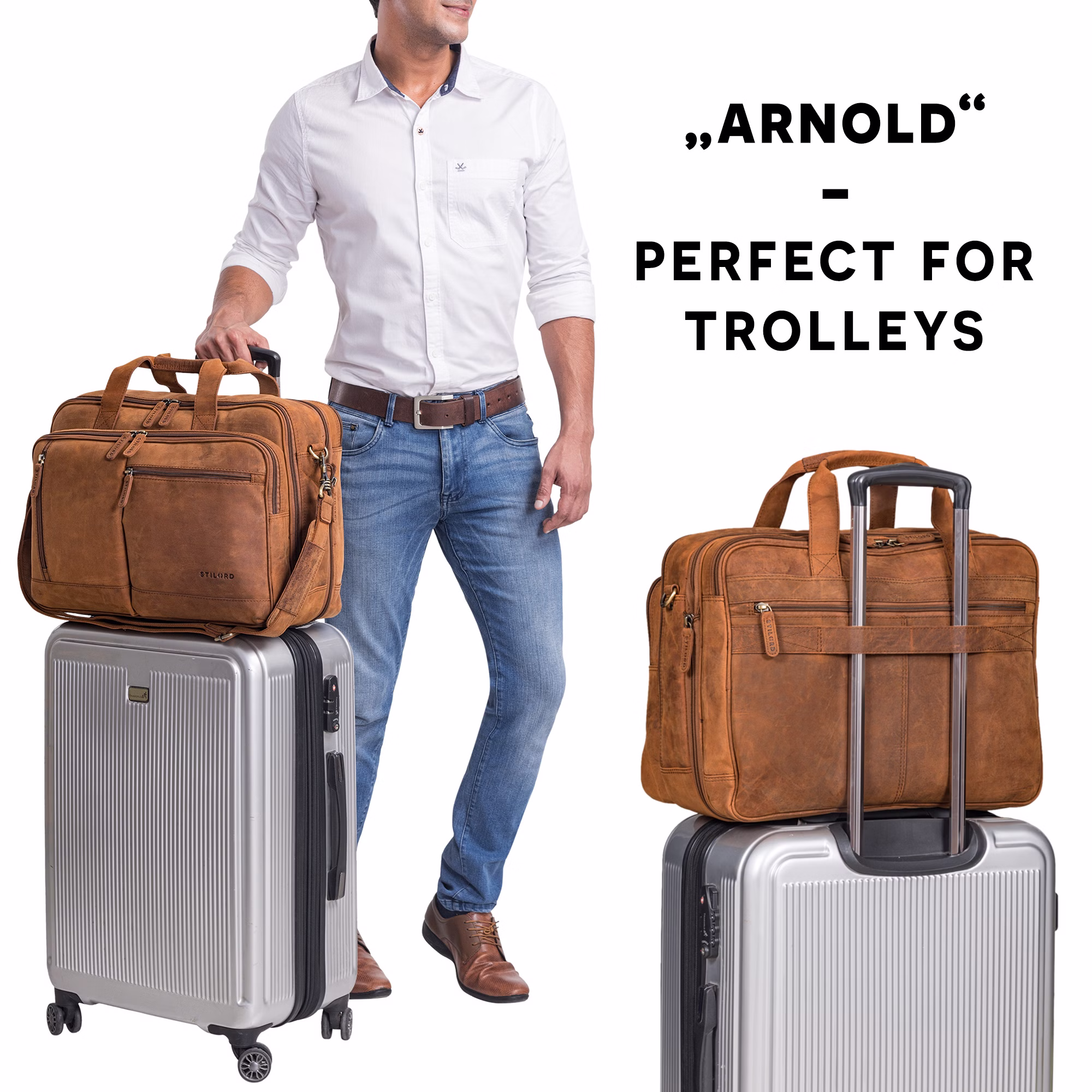 • "Arnold" Maletín Portátil de Piel de la marca de estilo de vida vintage STILORD. Descubre una bolso hombre bandolera XXL fabricada en piel auténtica que combina elegancia, organización y amplitud.