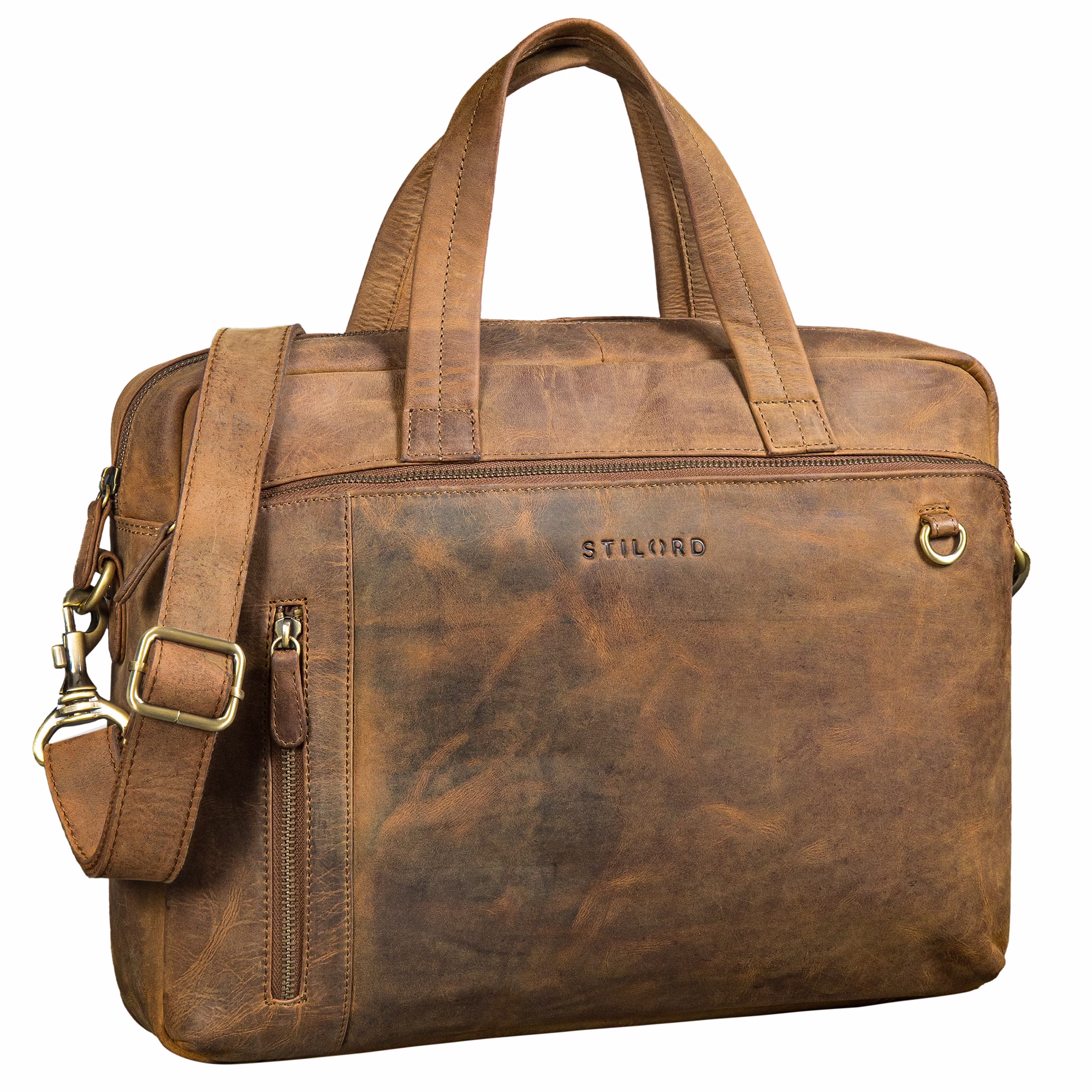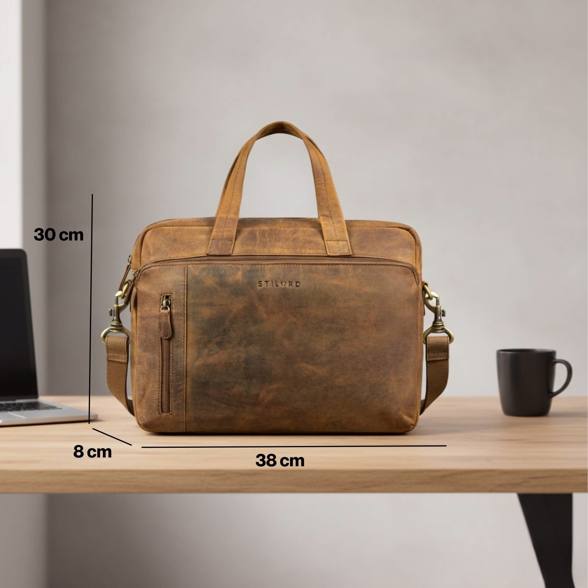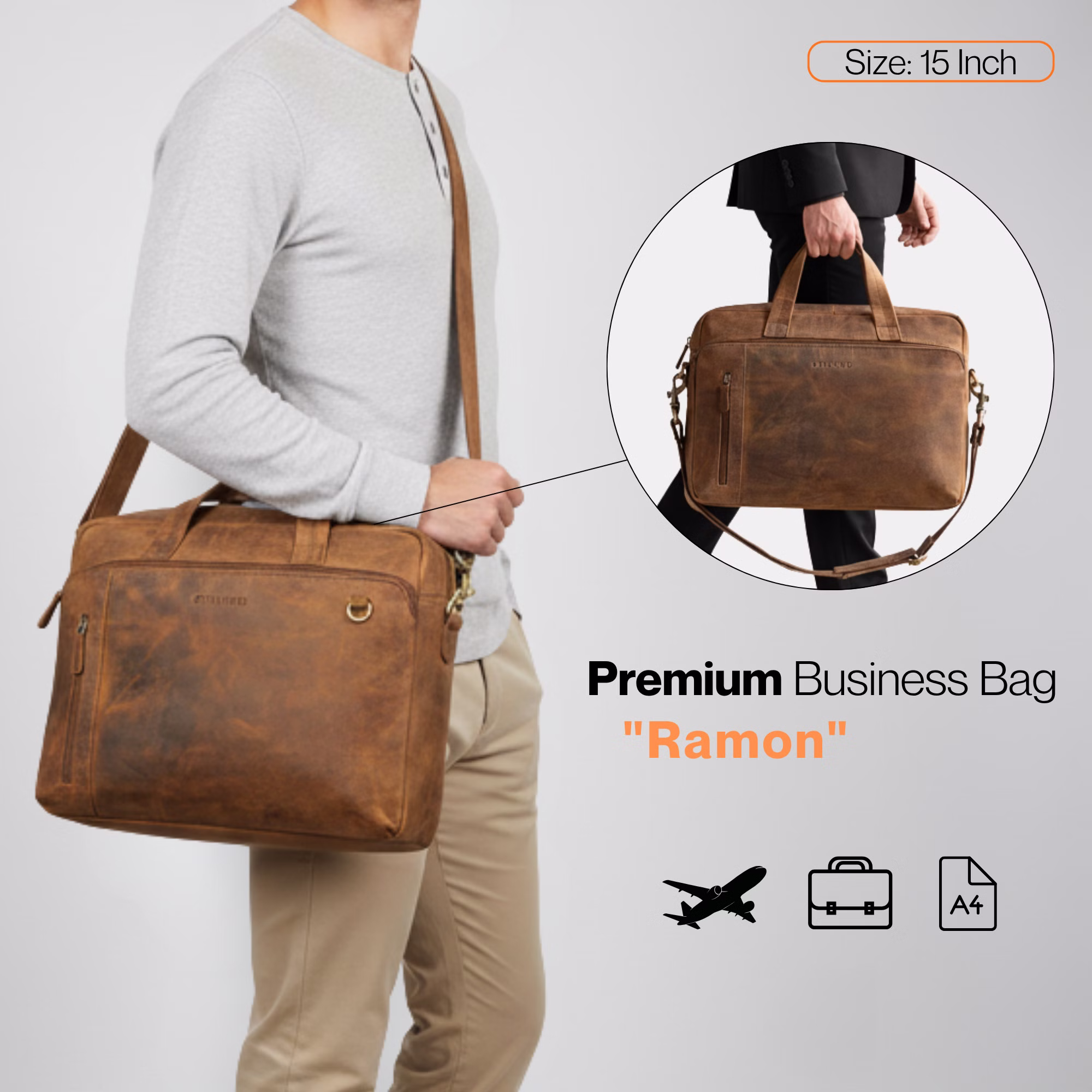 "Ramon" es el maletín de negocios para hombres que quieren hacer visible su ambición y éxito cada día. Fabricado en cuero auténtico de alta calidad, este bandolera hombre cuero combina una apariencia profesional con un interior claramente estructurado. El amplio compartimento principal con bolsillo acolchado para portátil de bandolera portatil piel protege dispositivos de hasta 15 pulgadas, mientras que varios compartimentos mantienen documentos y tecnología bien organizados. Con asas resistentes, una correa de hombro ajustable y un práctico sistema para trolley, la bolsa trabajo es un portadocumentos hombre piel fiable para reuniones, trayectos diarios y viajes de negocios.