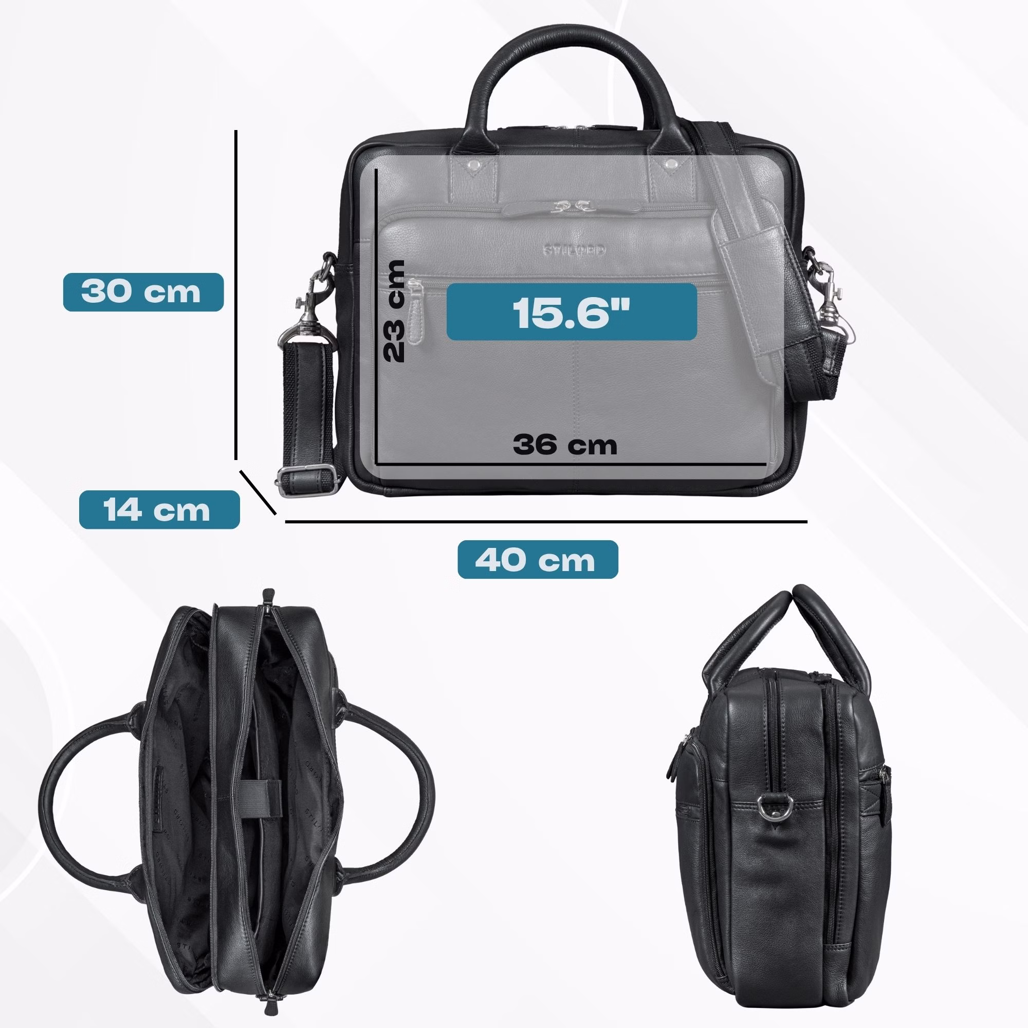- DETALLES: Dimensiones: aprox. 40 x 14 x 30 cm | Peso: 1500 g | Modelo: "Jerome" | Material: cuero auténtico de vaca | Marca: STILORD | Compatibilidad: portátiles hasta 15,6 pulgadas o MacBook de 16 pulgadas (37 x 27 cm)