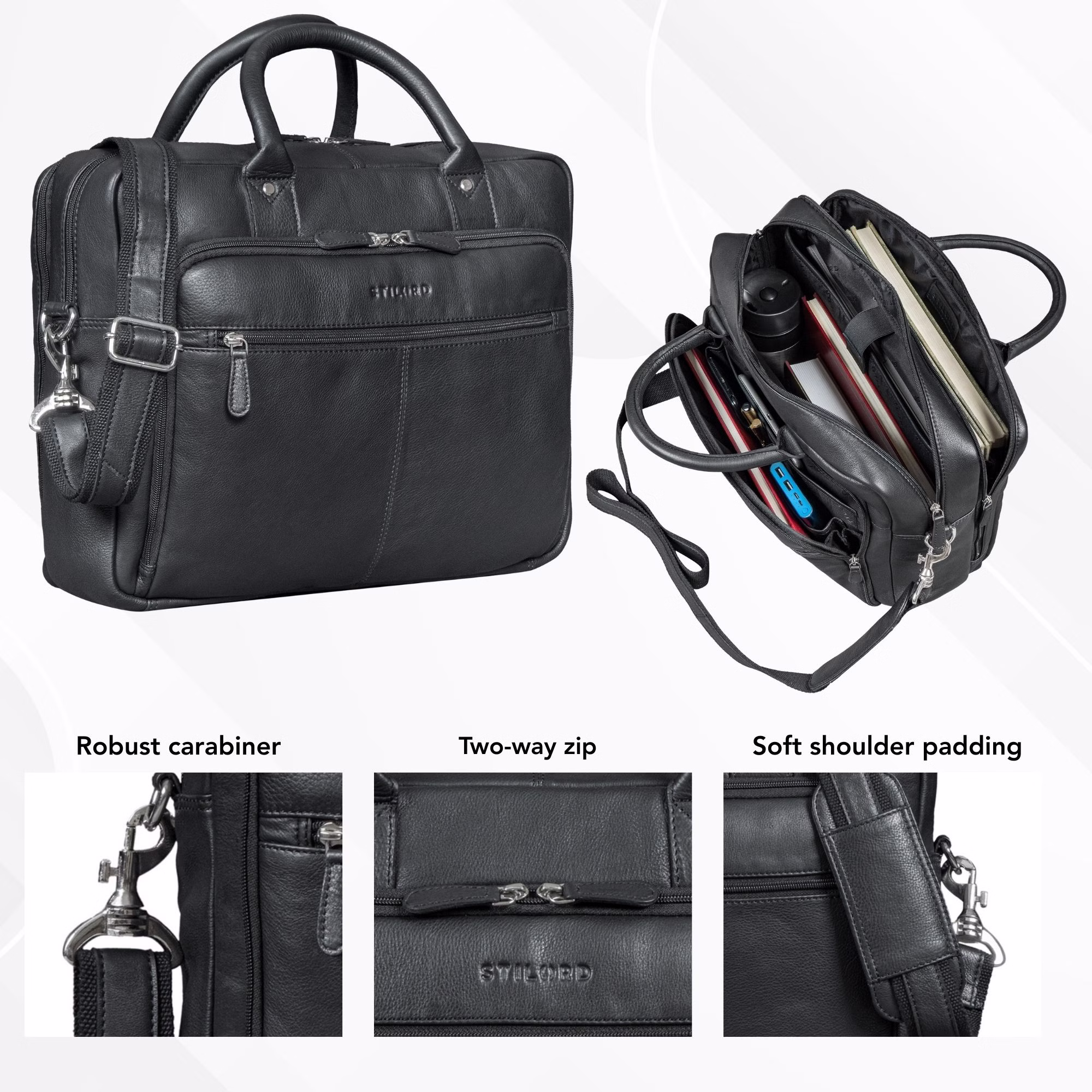 - DETALLES: Dimensiones: aprox. 40 x 14 x 30 cm | Peso: 1500 g | Modelo: "Jerome" | Material: cuero auténtico de vaca | Marca: STILORD | Compatibilidad: portátiles hasta 16 pulgadas o MacBook de 16 pulgadas