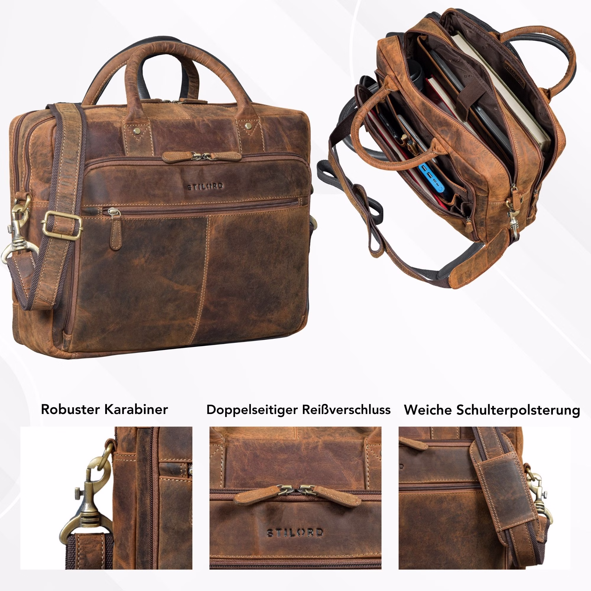 - DETALLES: Dimensiones: aprox. 40 x 14 x 30 cm | Peso: 1500 g | Modelo: "Jerome" | Material: cuero auténtico de vaca | Marca: STILORD | Compatibilidad: portátiles hasta 16 pulgadas o MacBook de 16 pulgadas