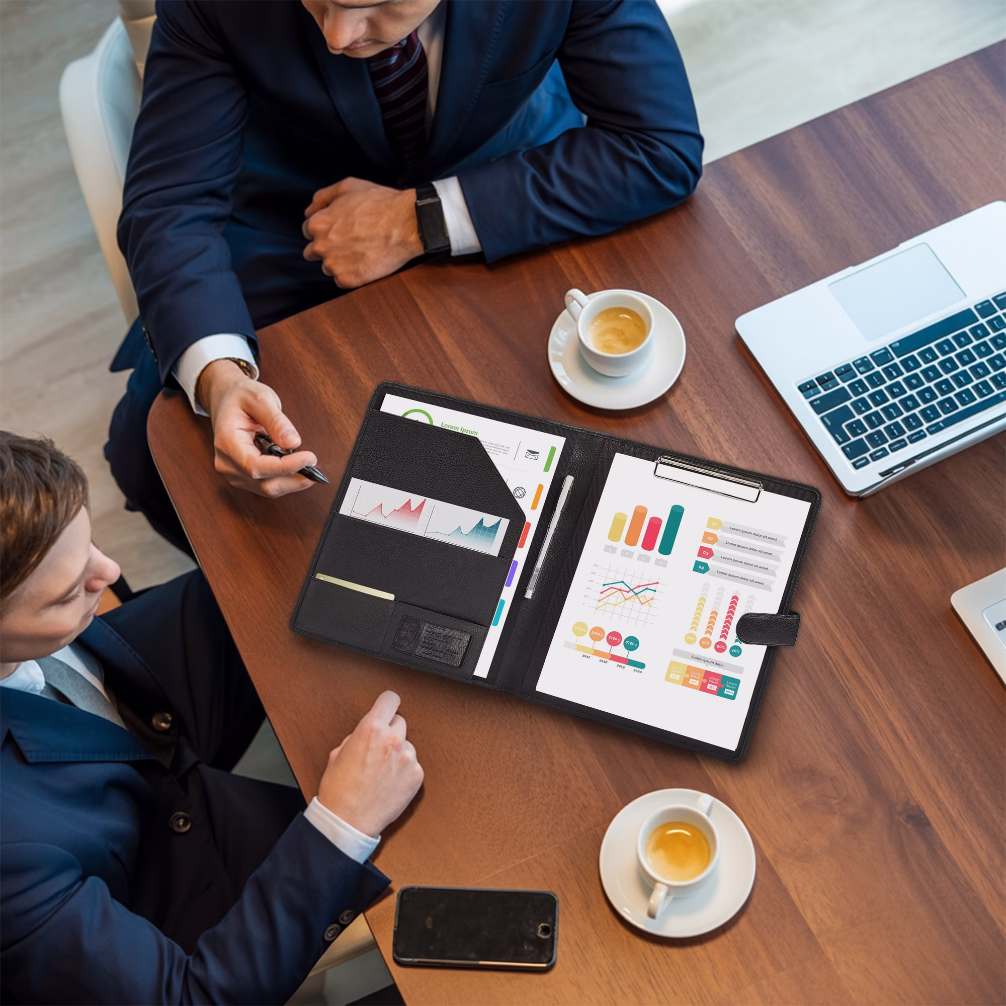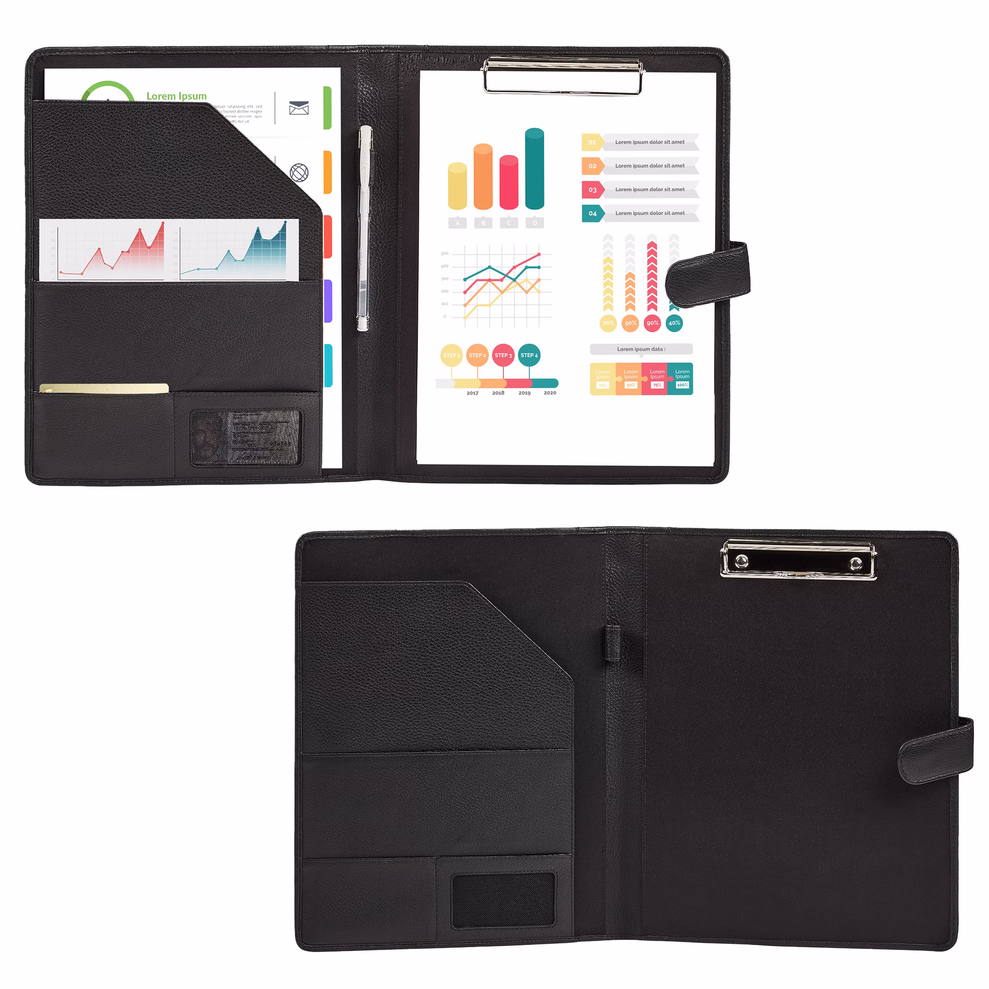 - Carpeta de cuero con pinza: el robusto portapapeles facilita la escritura directa en la carpeta para documentos, ideal para reuniones, presentaciones y viajes