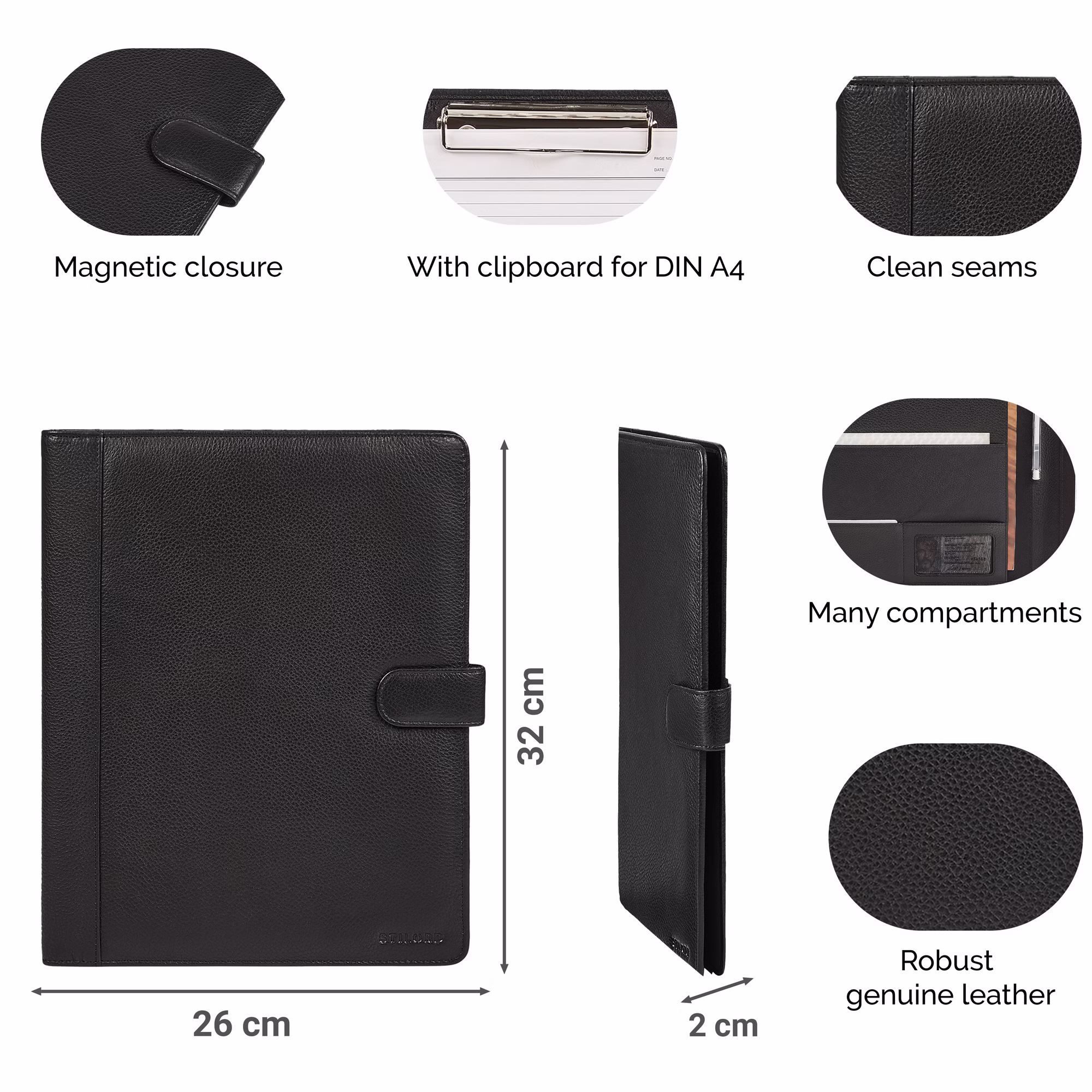 - CARPETA PORTADOCUMENTOS A4: cartera portadocumentos de cuero con pinza | apto para bloc de notas A4 | con cierre magnético seguro para cerrar rápida y fácilmente su carpeta de conferencias de piel auténtico