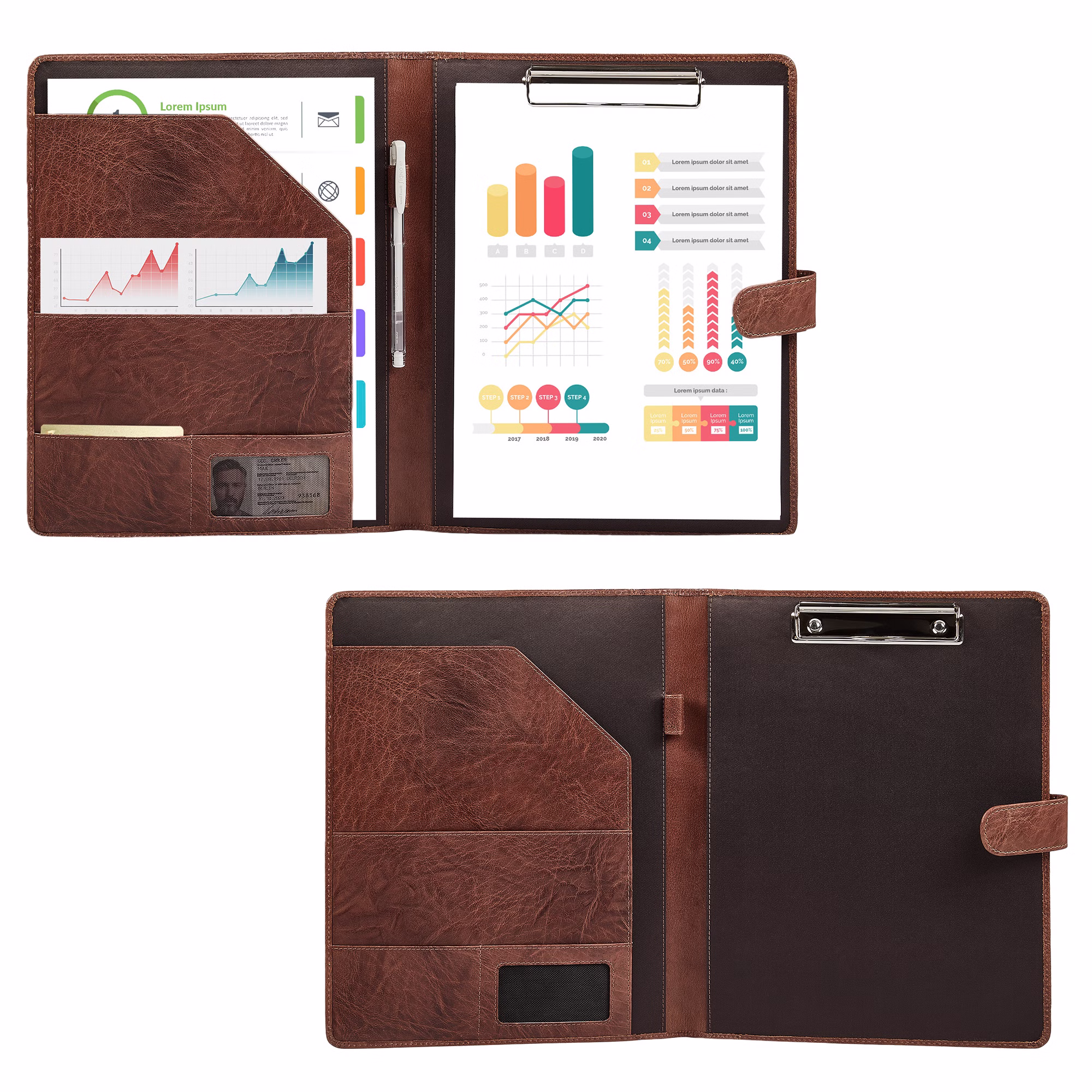 - Carpeta de cuero con pinza: el robusto portapapeles facilita la escritura directa en la carpeta para documentos, ideal para reuniones, presentaciones y viajes