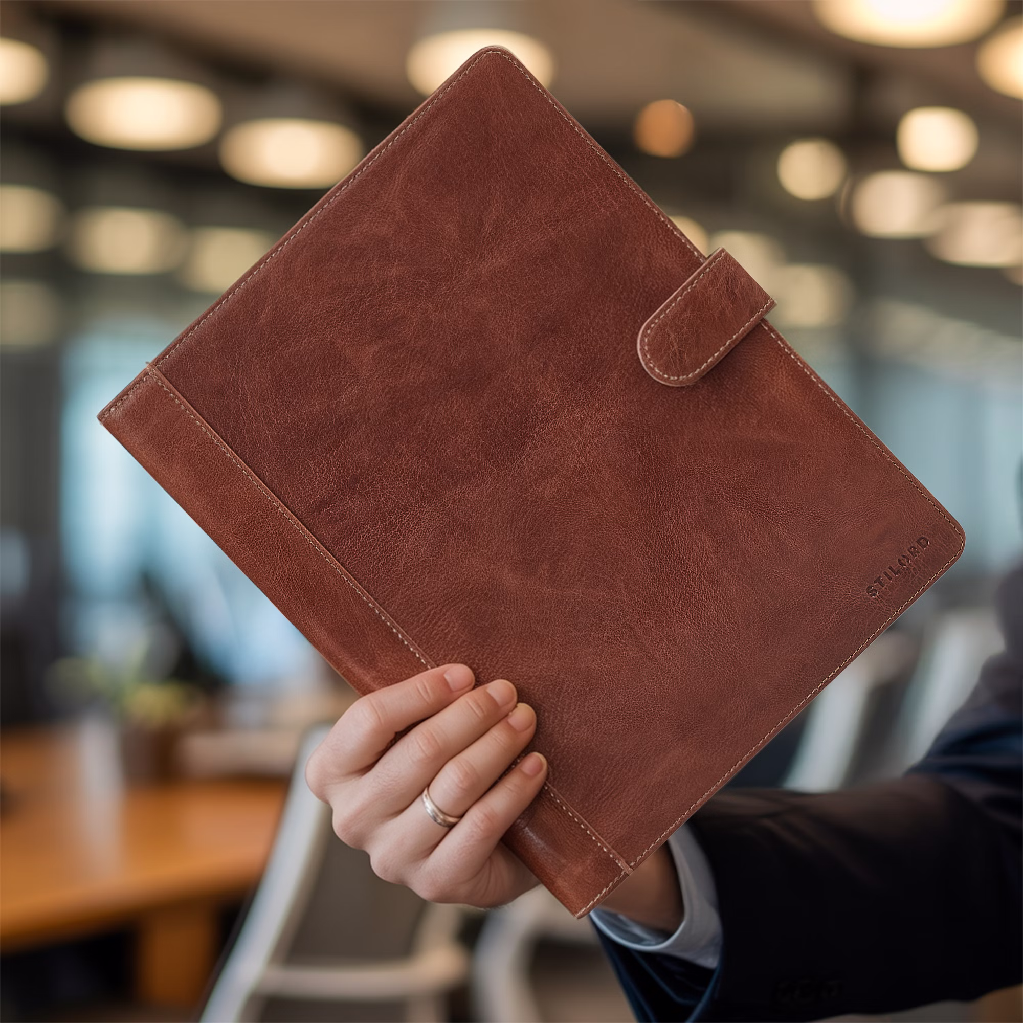 - CARPETA PORTADOCUMENTOS A4: cartera portadocumentos de cuero con pinza | apto para bloc de notas A4 | con cierre magnético seguro para cerrar rápida y fácilmente su carpeta de conferencias de piel auténtico