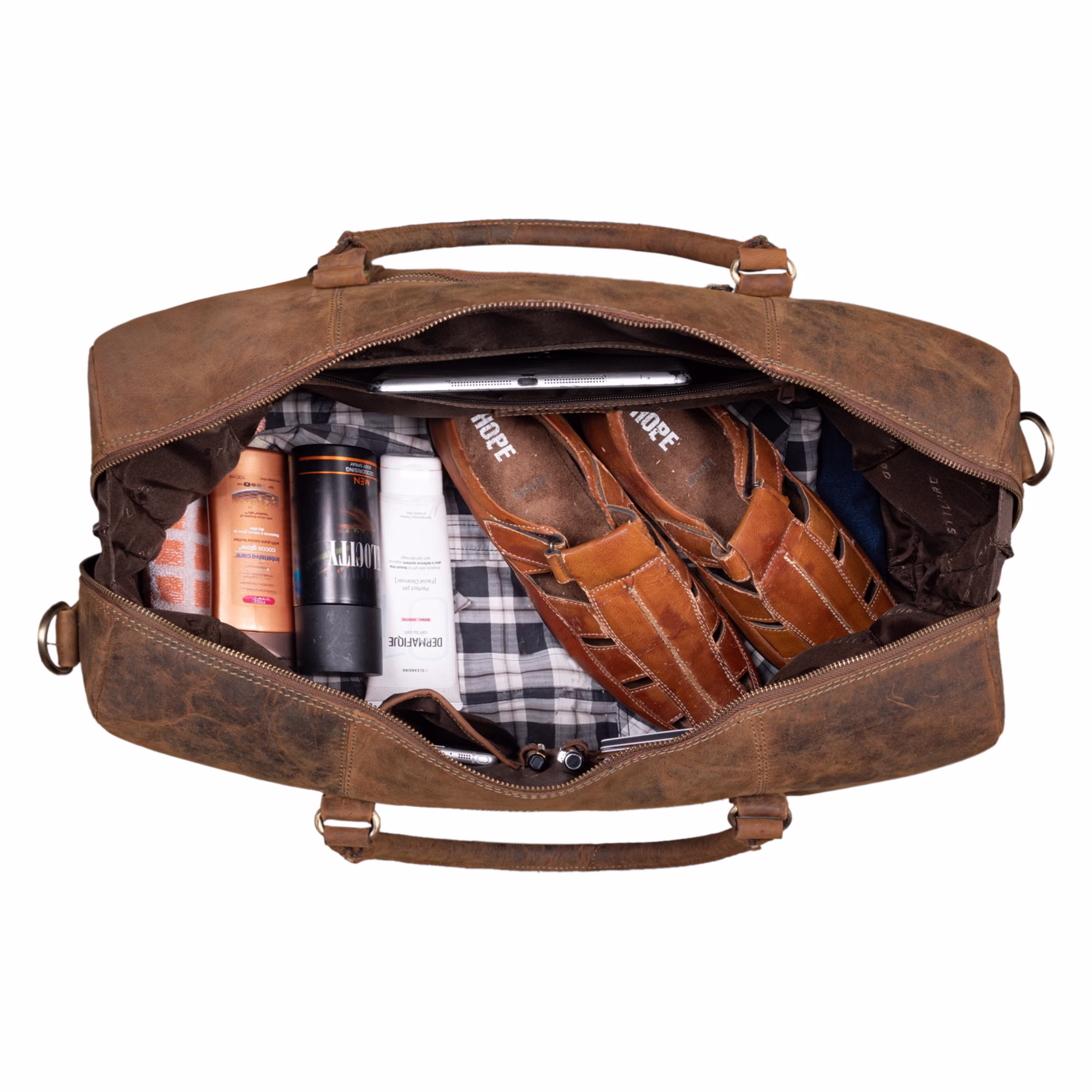 - "Iska", la compañera de viaje con estilo: El cuero vintage clásico y el diseño elegante hacen que la bolsa de equipaje de mano sea un verdadero punto de atracción en cada viaje.