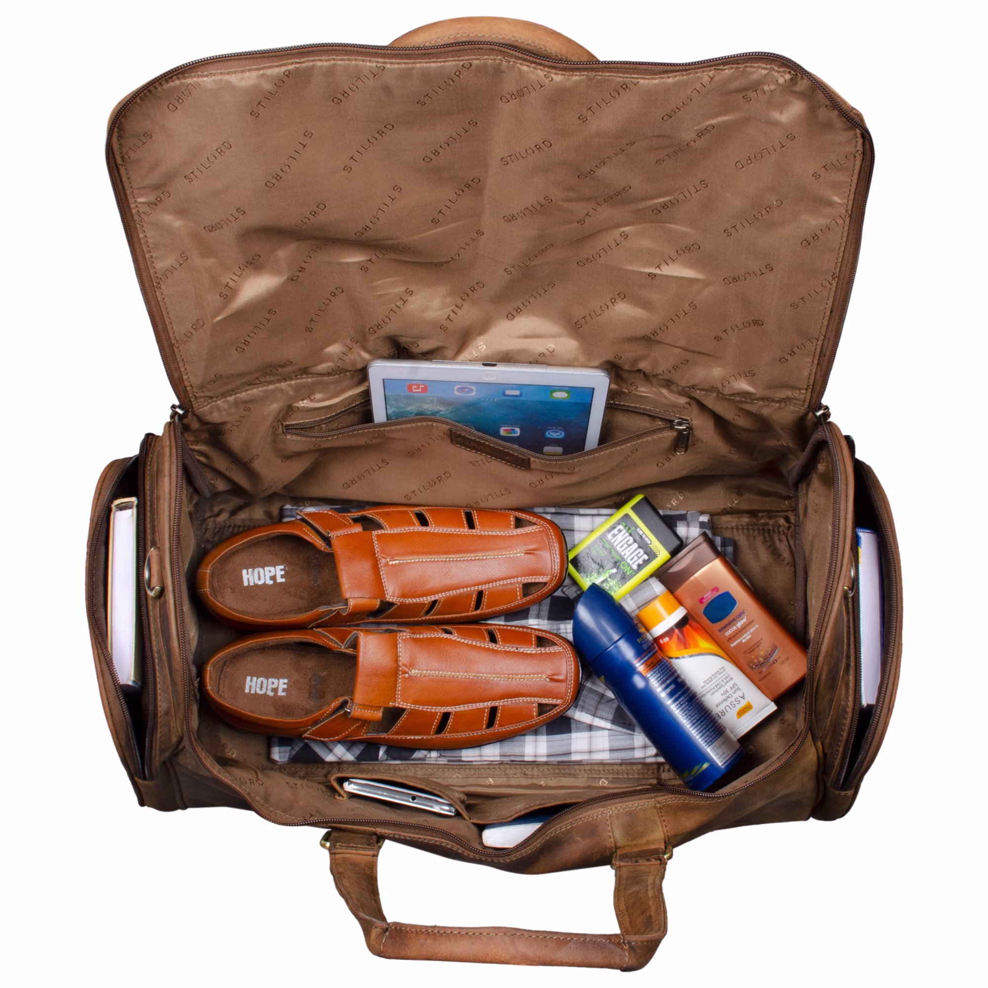 - Elegante bolsa de viaje de cuero del fabricante de la marca STILORD