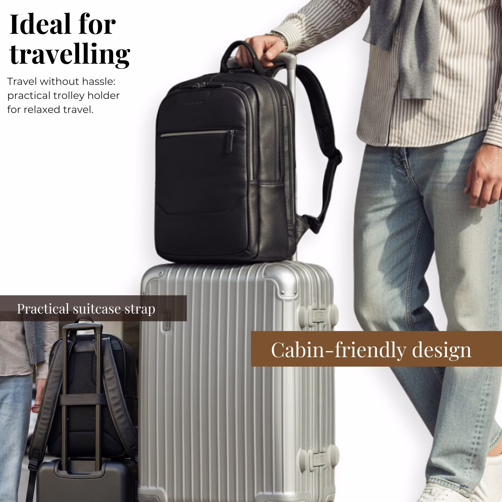 - SIEMPRE EN MOVIMIENTO: Espalda acolchada, correas reforzadas y ajustables, asa de cuero y un sistema para trolley: esta mochila de trabajo para hombre ofrece comodidad flexible durante todo el día, ya sea viajando o desplazándote por la ciudad.