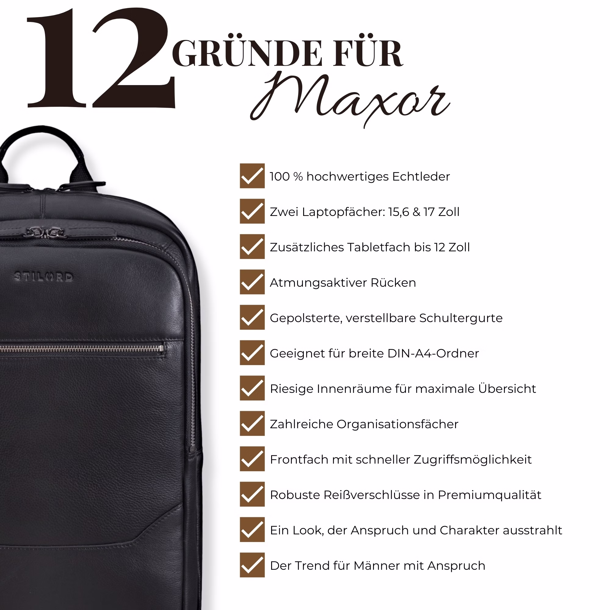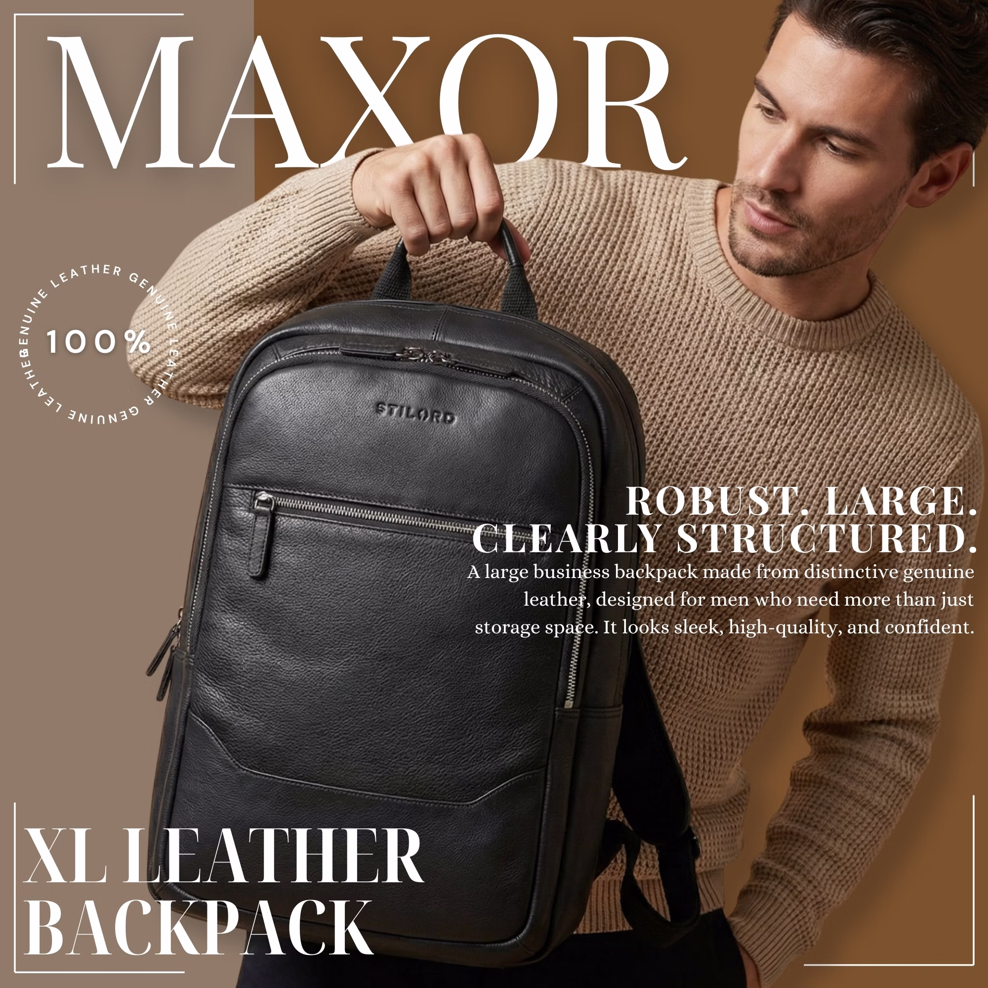 - LOOK PREMIUM PARA EL TRABAJO: Con “Maxor” eliges una mochila de negocio para hombre en piel auténtica, grande y elegante. Perfecta para quienes buscan profesionalidad, organización y un estilo impecable en la oficina.