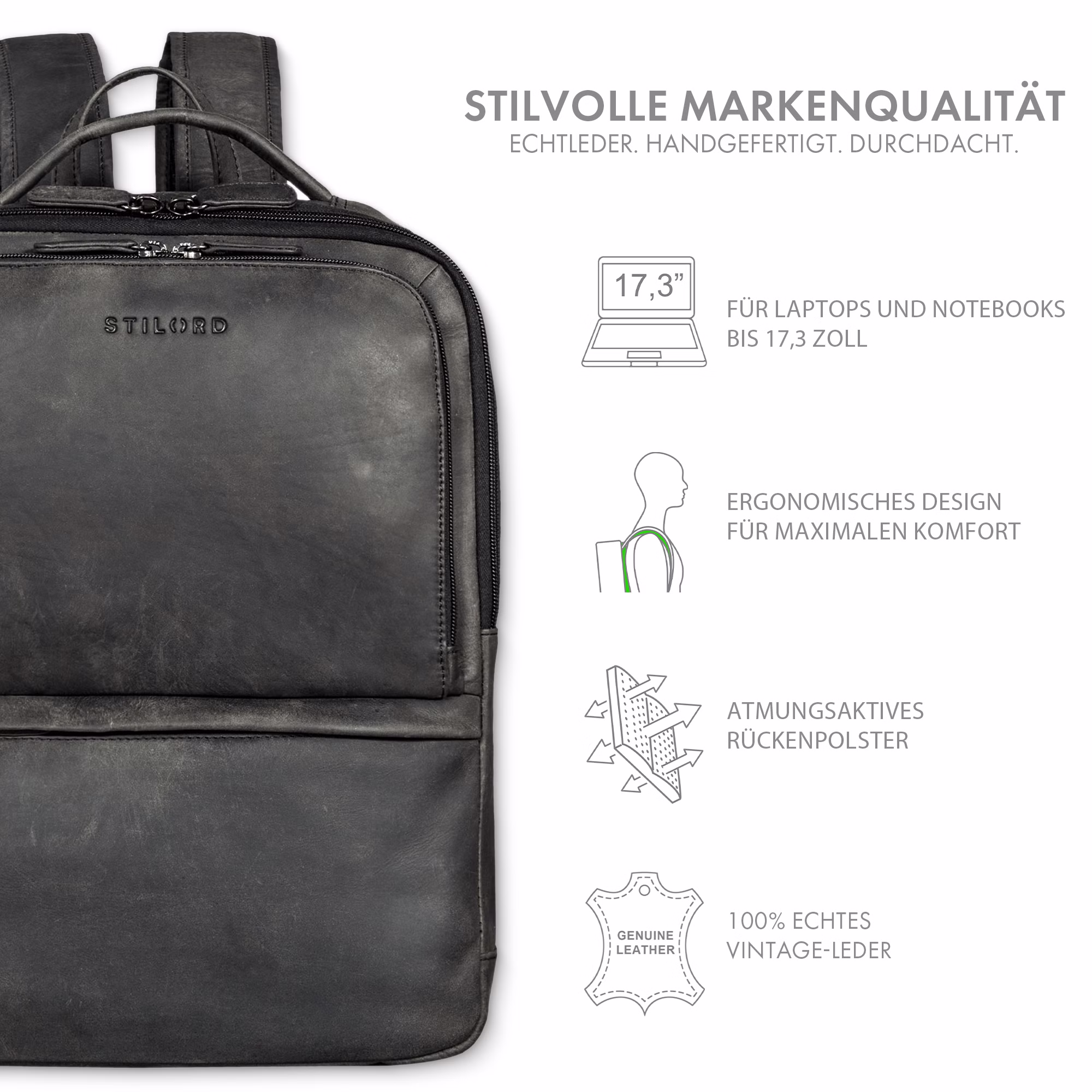 "Albert" Mochila de Cuero Hombre – Todas las ventajas de un vistazo