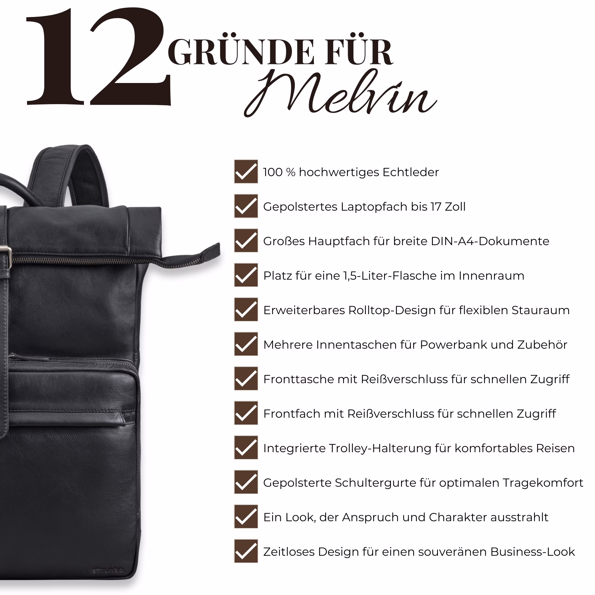 STILORD "Melvin" Mochila Piel Hombre enrollable – Todo de un vistazo