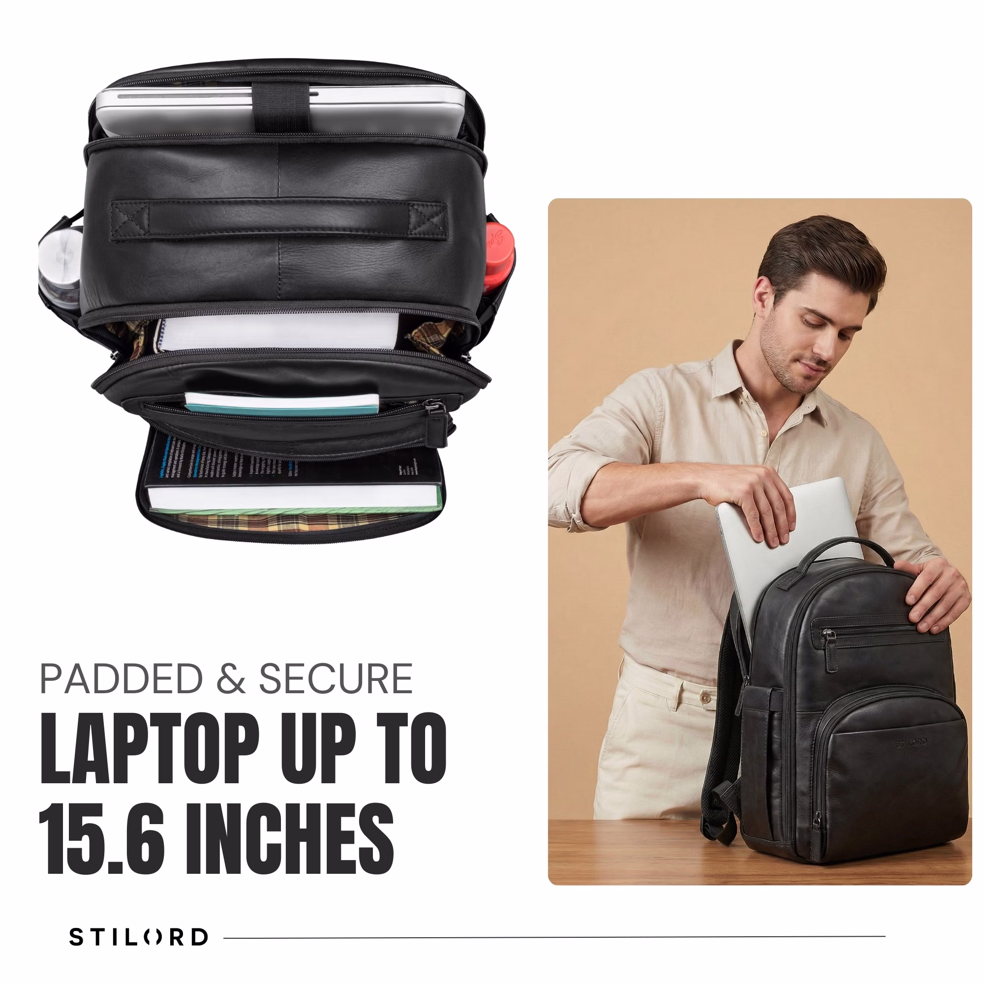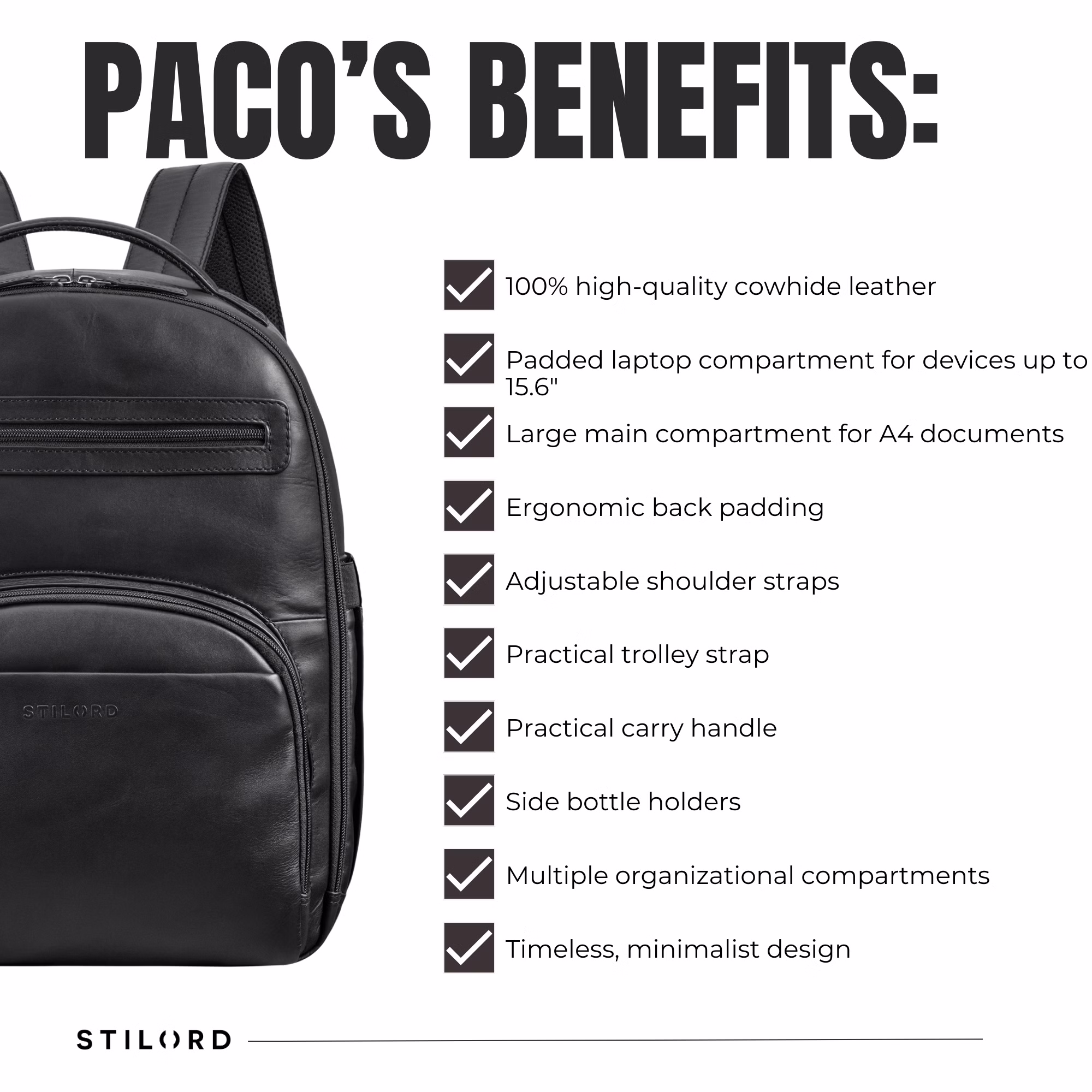 STILORD “Paco” – Mochila Hombre Cuero para Trabajo, Business y Viaje
