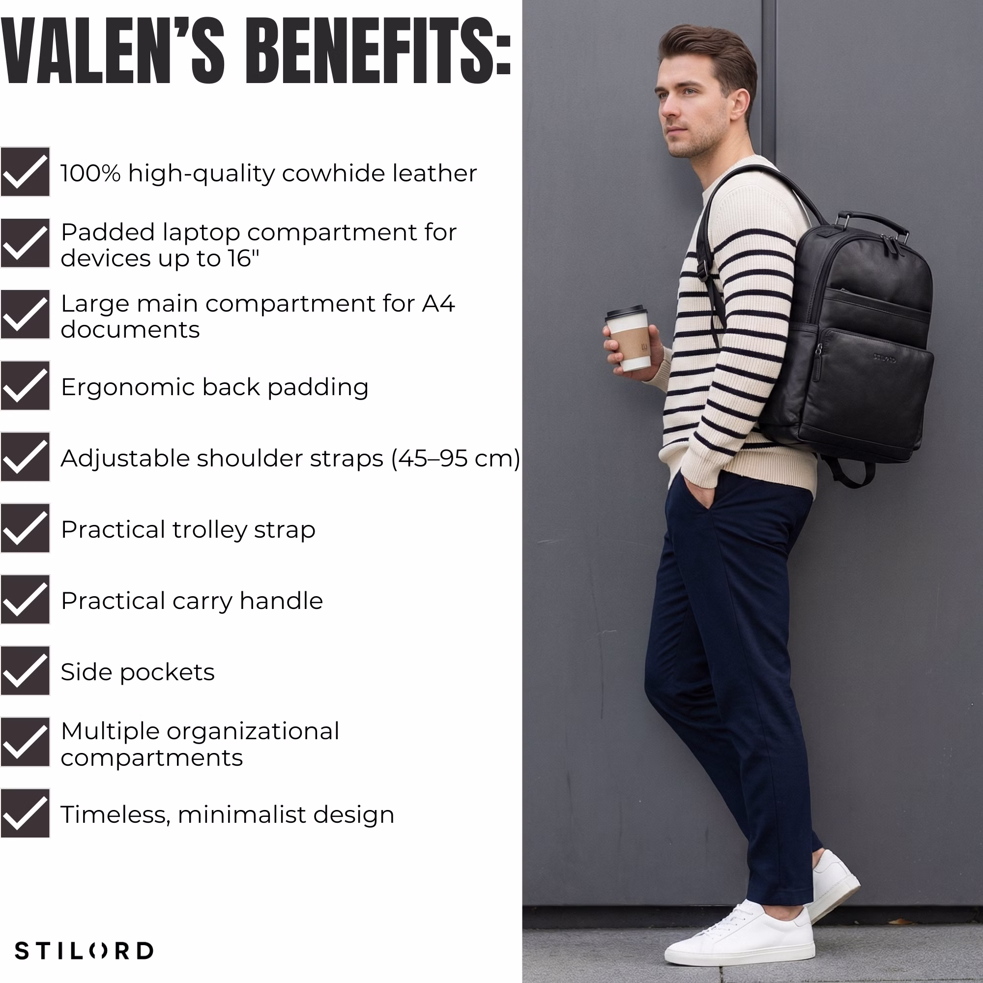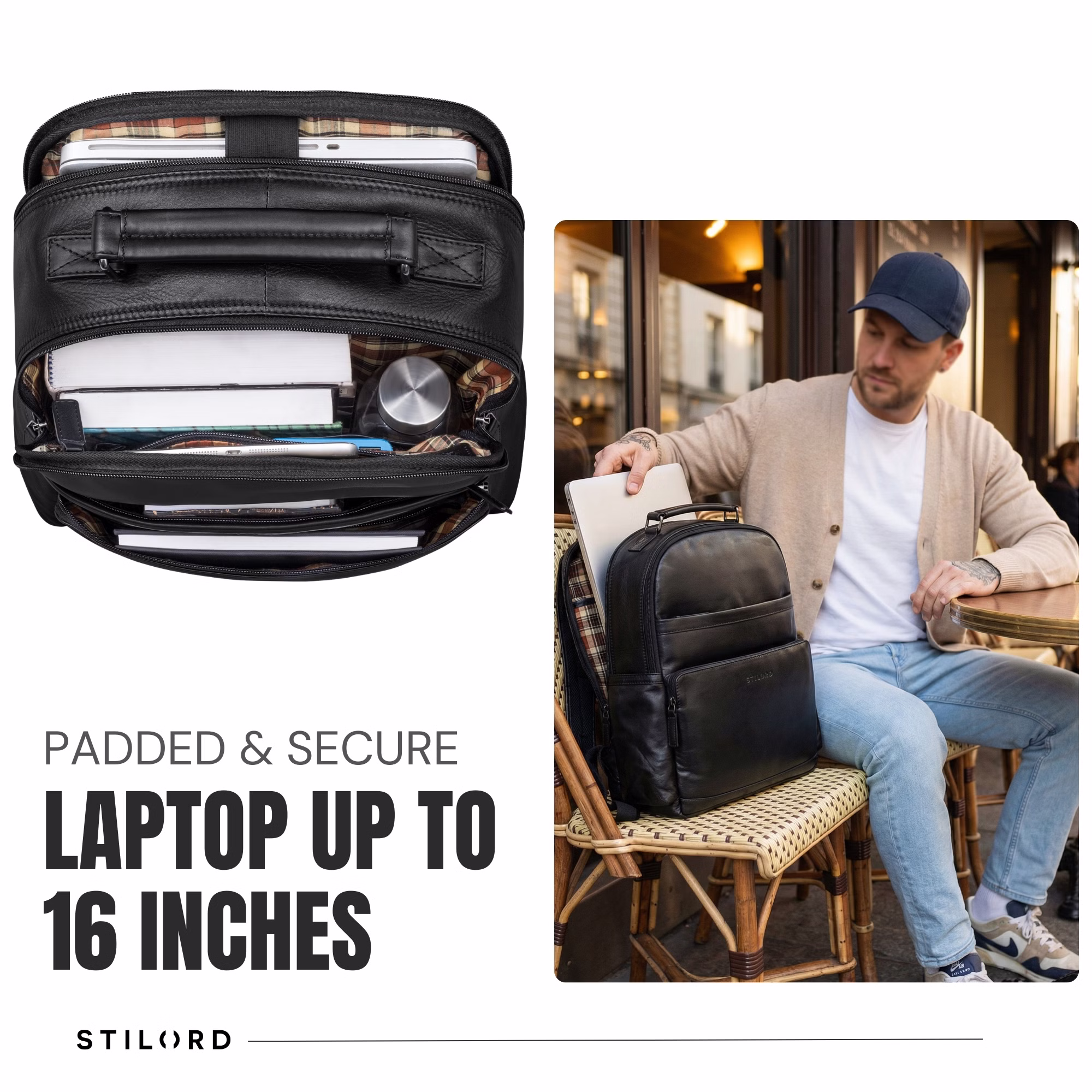 STILORD “Valens” – Mochila de Cuero Business para Hombre con Compartimento 16 Pulgadas