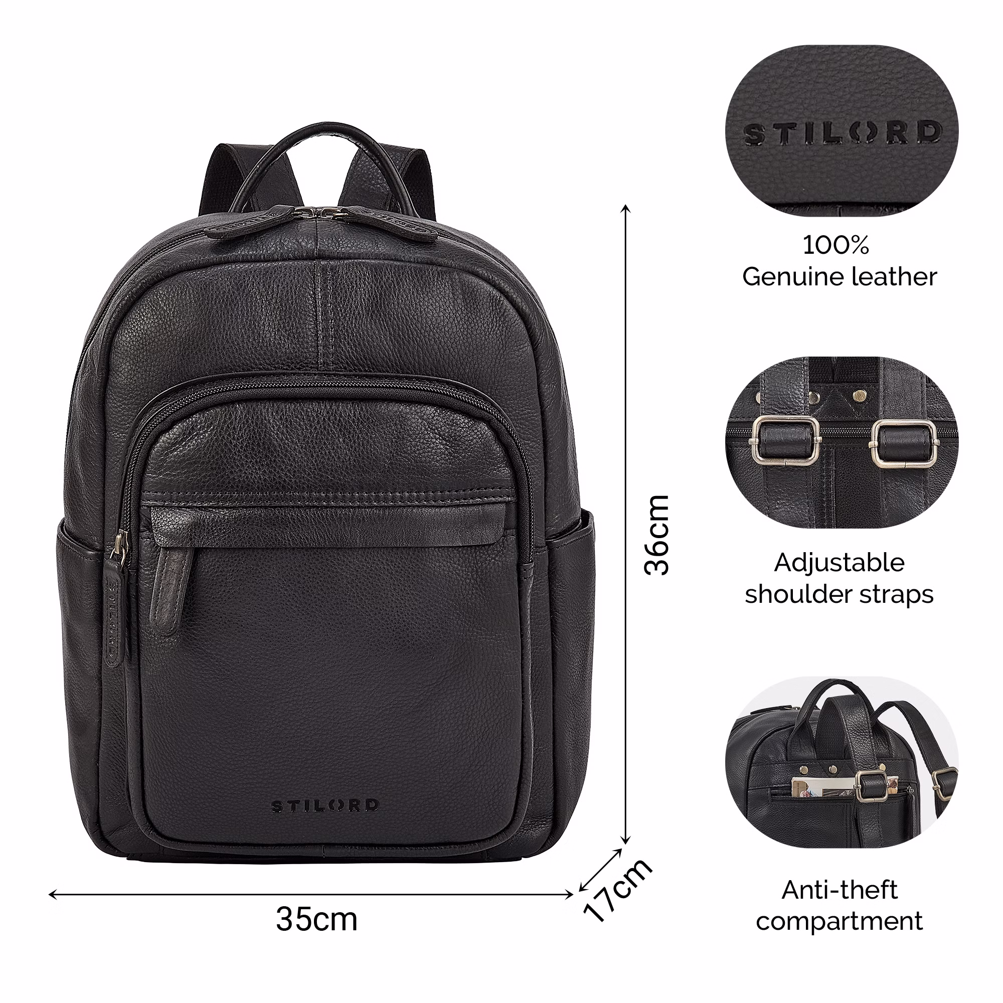 - STILORD – LA MARCA VINTAGE: Dimensiones (LxAnxAl): 35 x 17 x 36 cm | Peso: 450 g | Modelo: "Dolores" | Material: cuero auténtico | Marca alemana STILORD – productos vintage modernos con calidad y dedicación.
