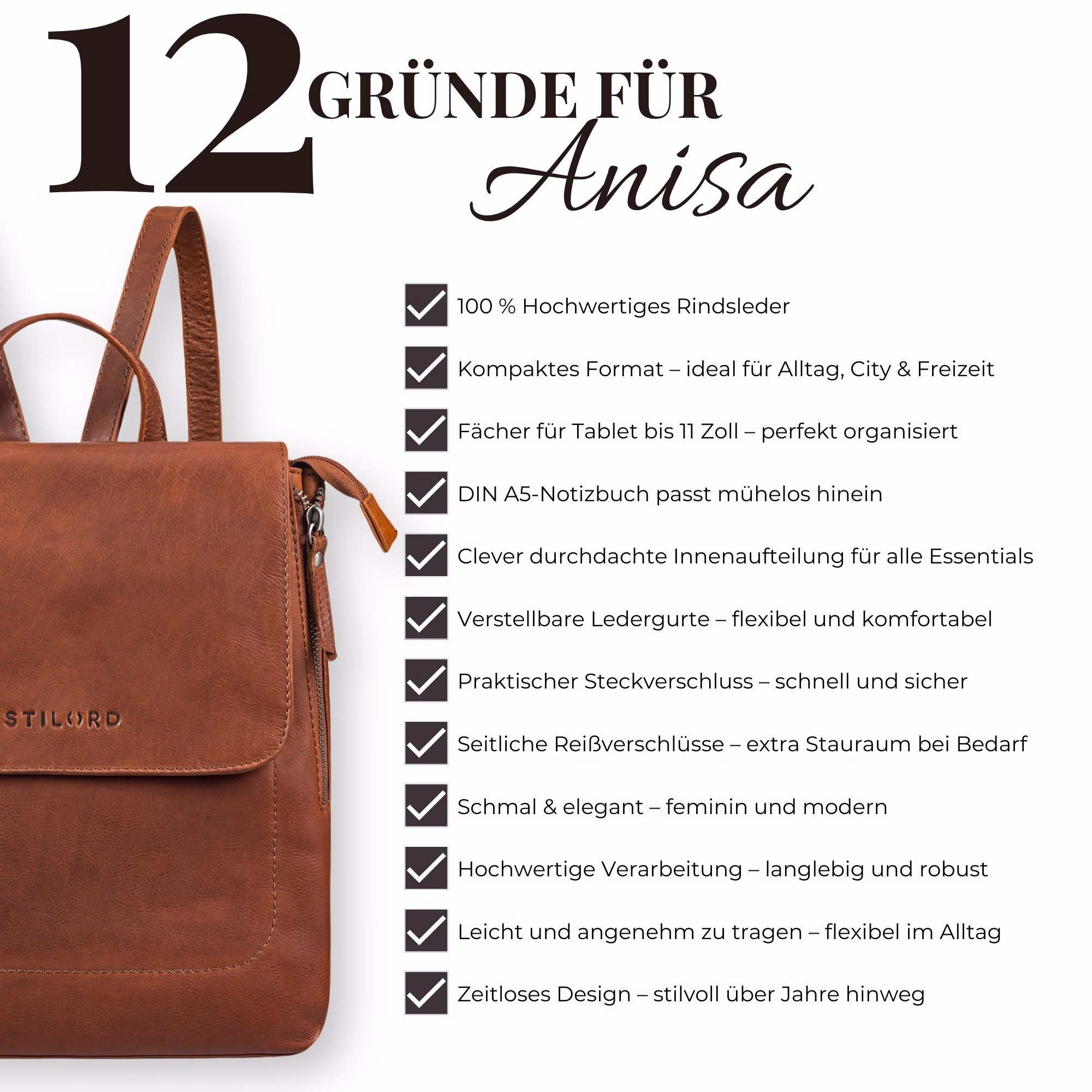 "Anisa" – La mochila de cuero pequeña para mujeres con estilo